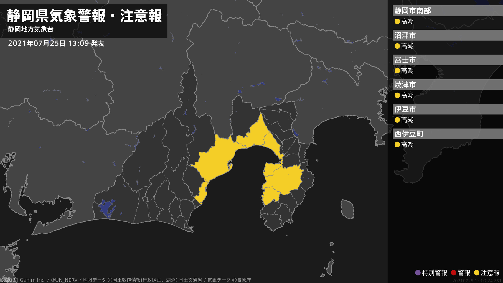【静岡県 気象警報・注意報 2021年07月25日 13:09】