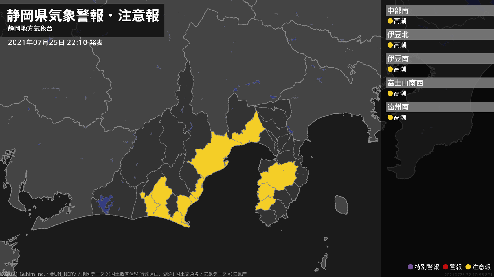 【静岡県 気象警報・注意報 2021年07月25日 22:10】