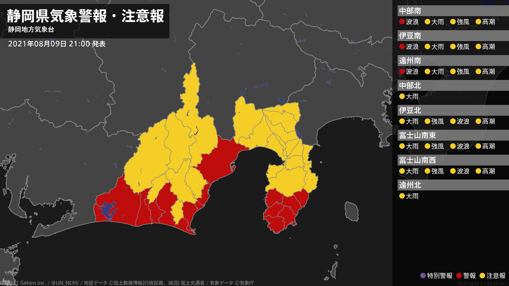 【大雨と暴風及び高波に関する全般気象情報 2021年08月09日 17:02】