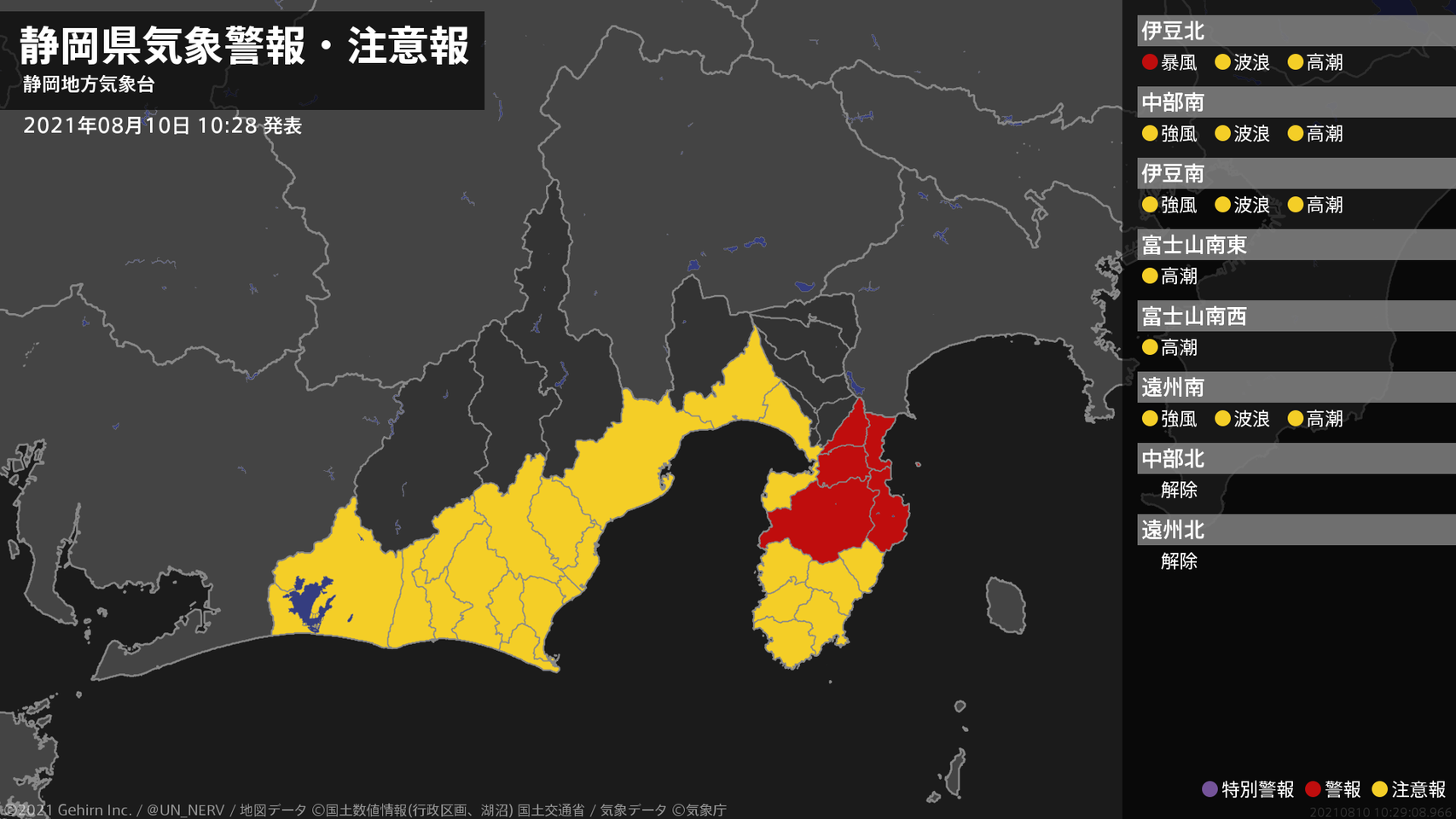 【大雨と暴風及び高波に関する全般気象情報 2021年08月10日 16:50】