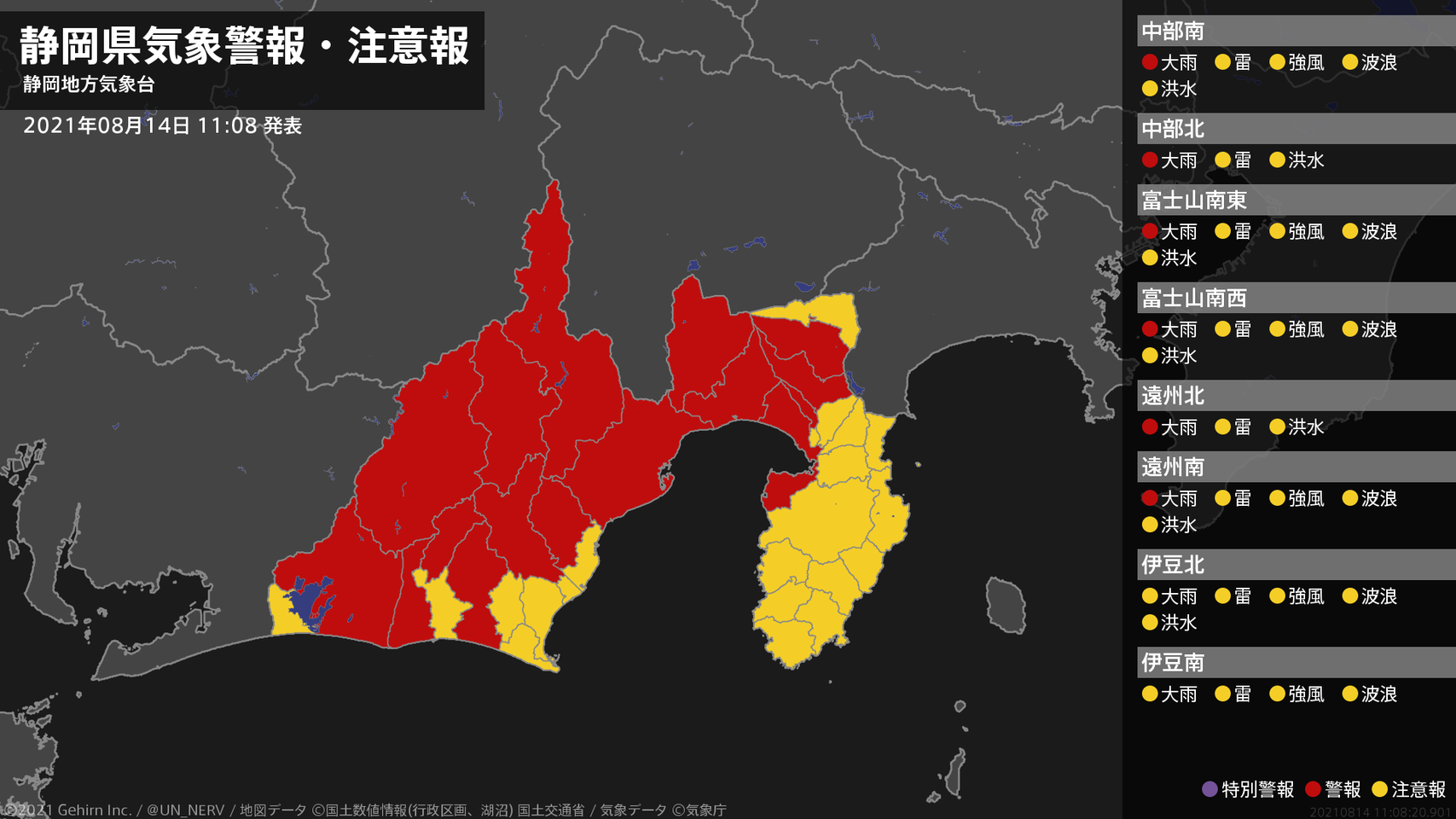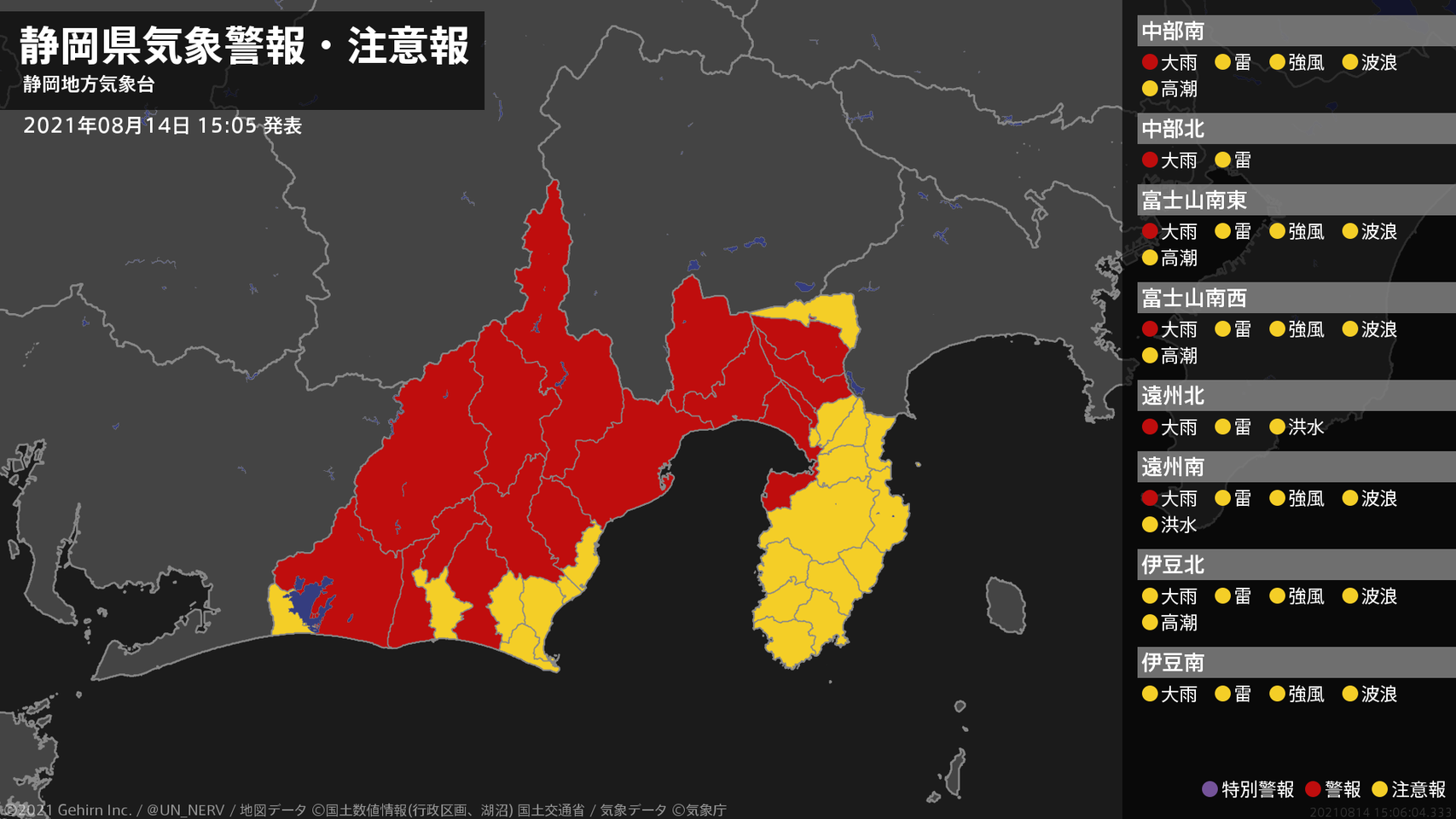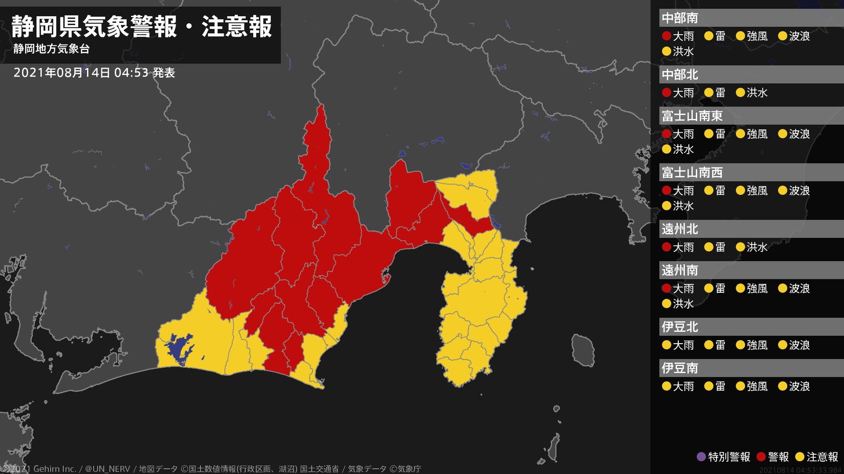 【記録的な大雨に関する全般気象情報 2021年08月14日 05:52】
