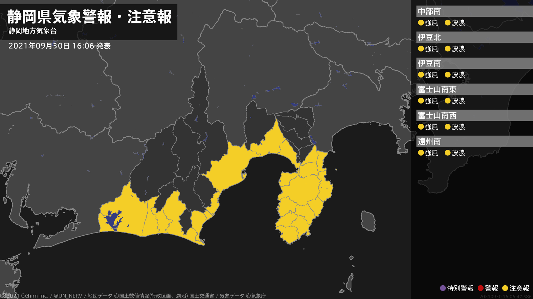 【静岡県 気象警報・注意報 2021年09月30日 16:06】