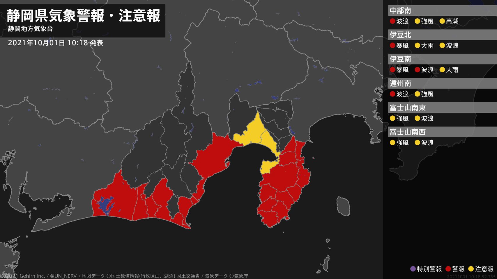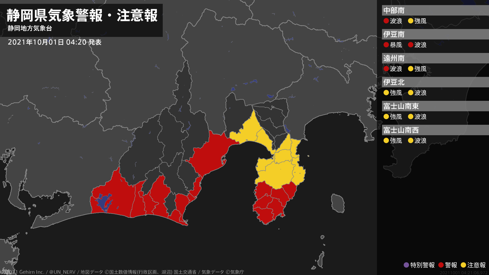 【静岡県 気象警報・注意報 2021年10月01日 04:21】