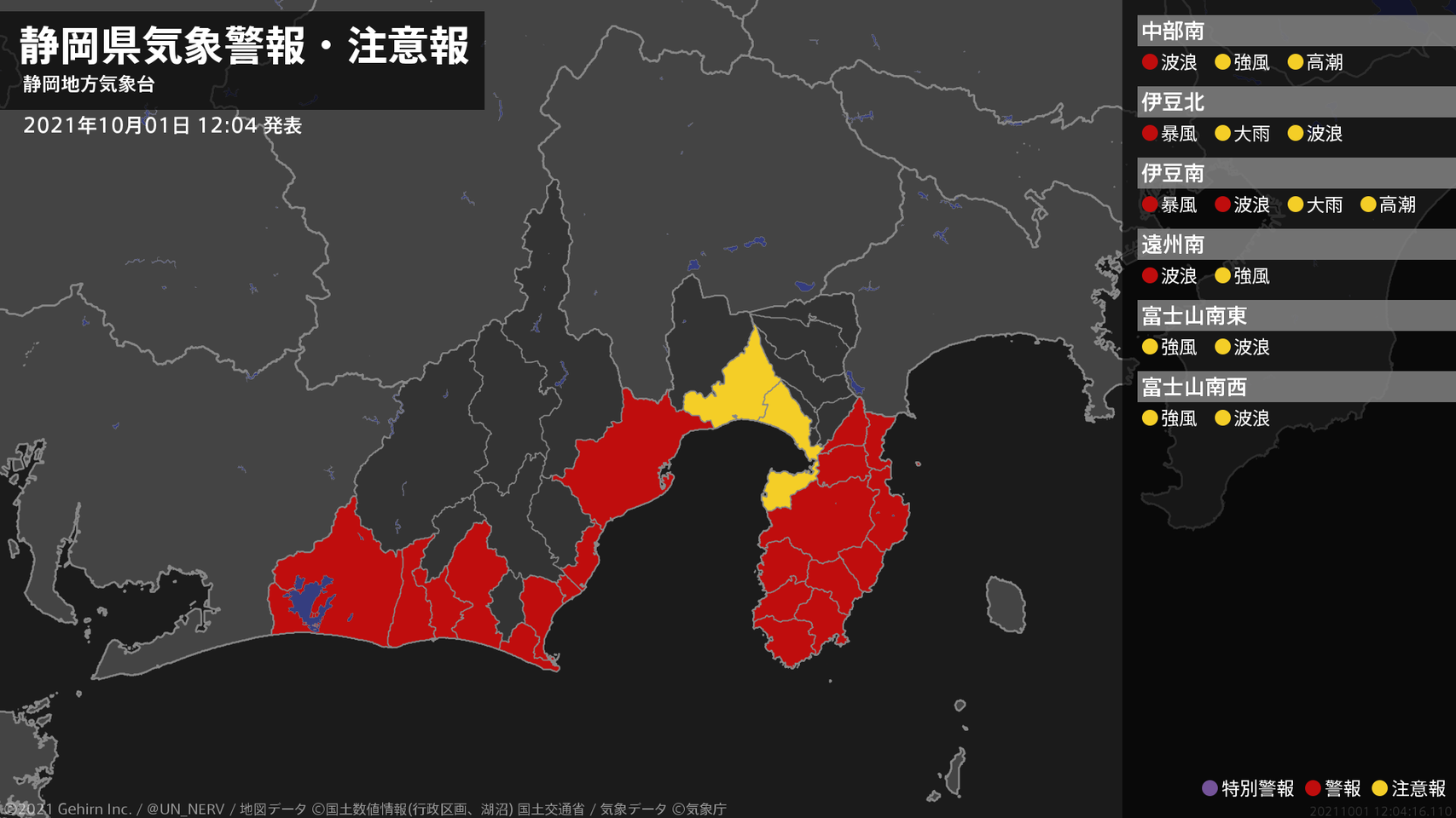 【静岡県 気象警報・注意報 2021年10月01日 12:04】