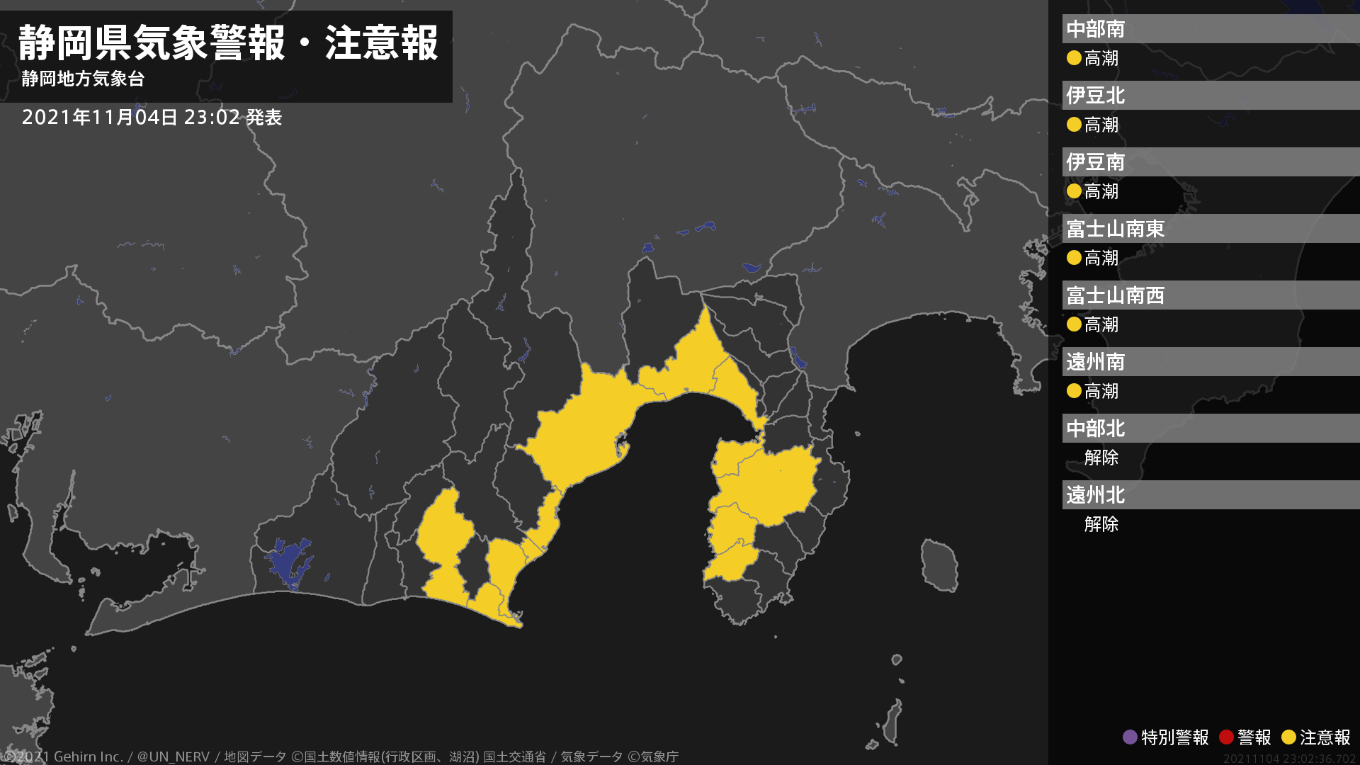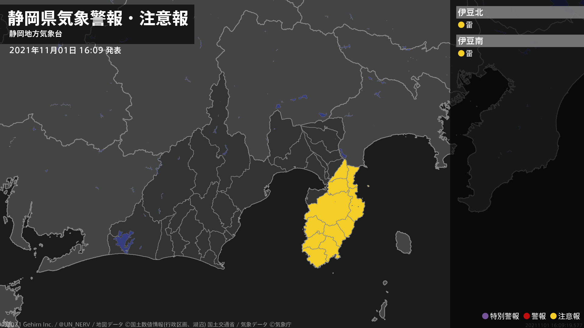 【雷と突風及び降ひょうに関する全般気象情報 2021年11月01日 16:26】