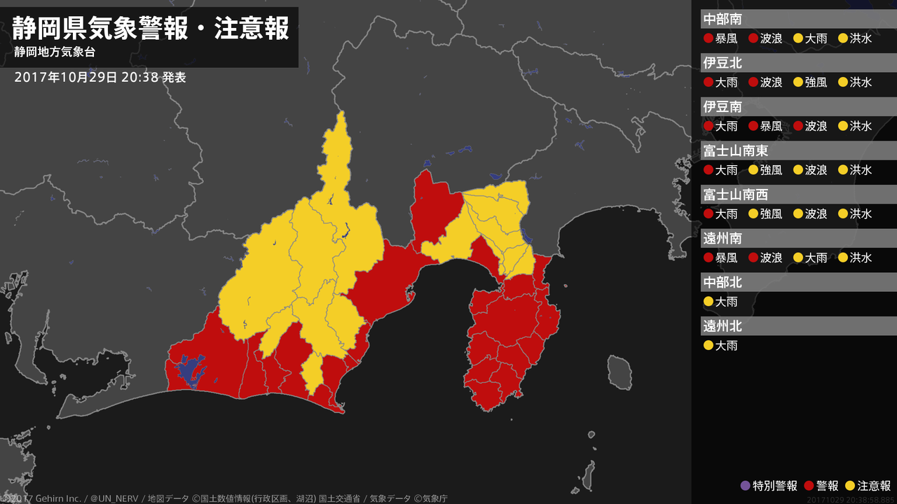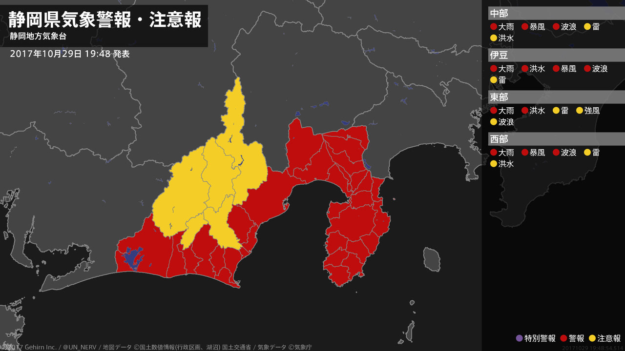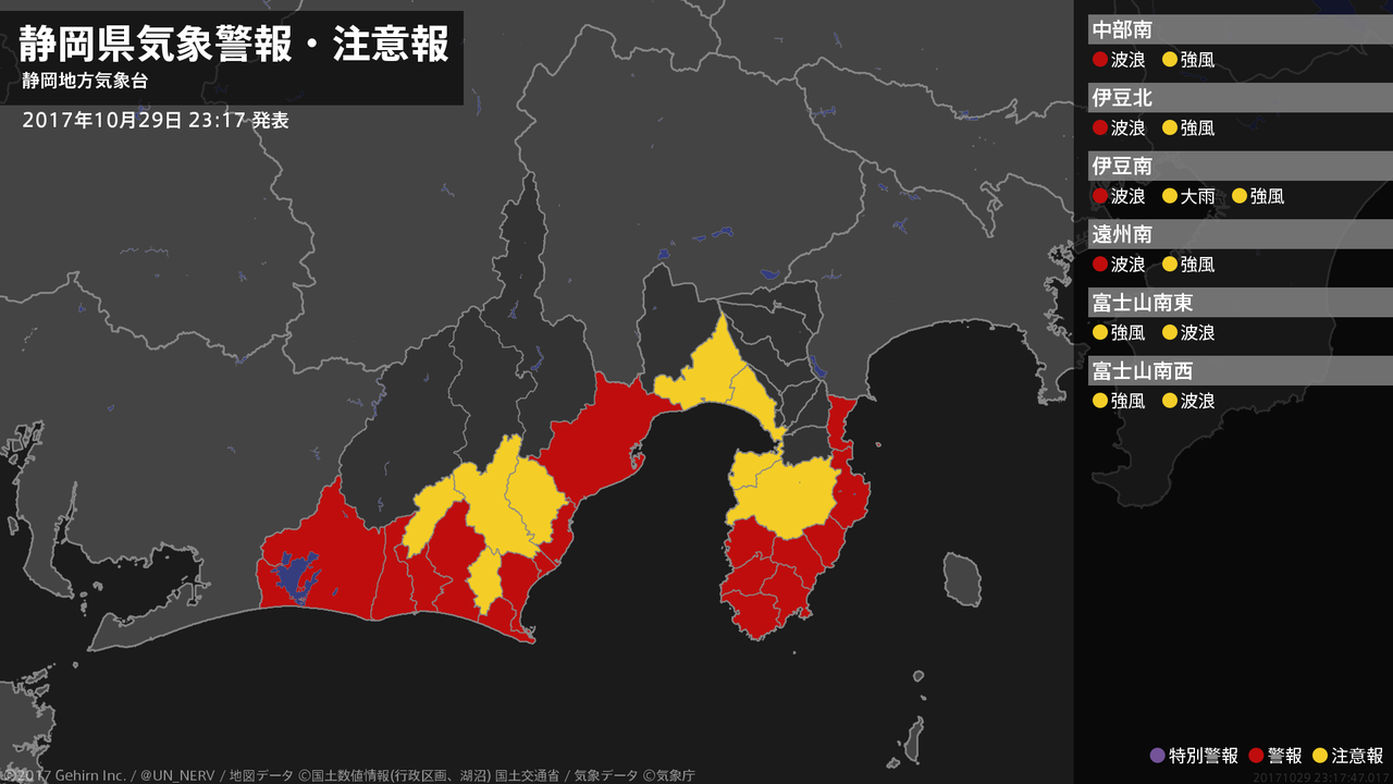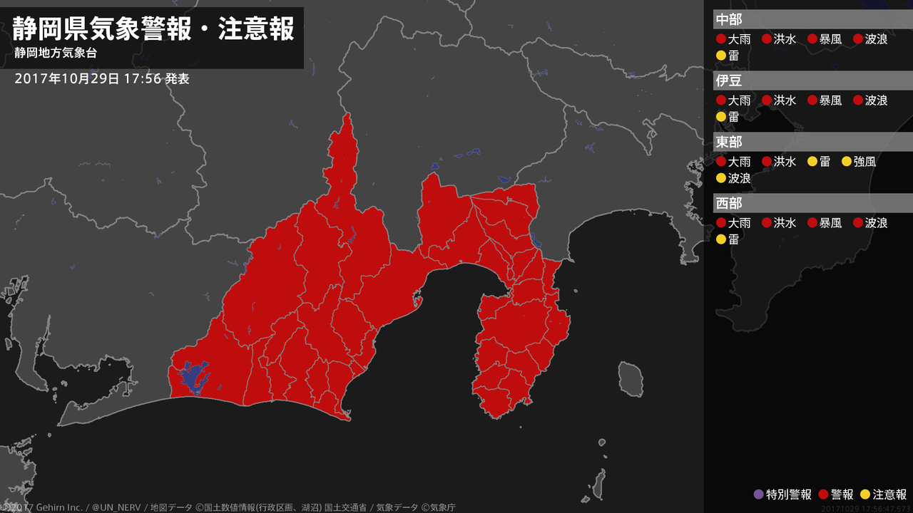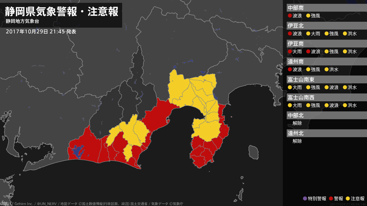 【静岡県 気象警報(解除) 2017年10月30日 04:17】