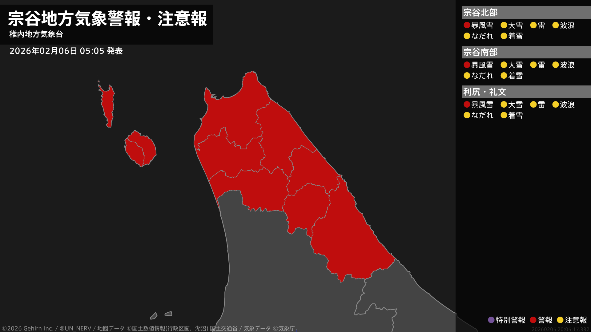 【宗谷地方 気象警報・注意報 2026年02月06日 05:05】宗谷地方では、6日朝から6日夜遅くまで暴風雪に警戒してください。#気象警報注意報 #宗谷地方