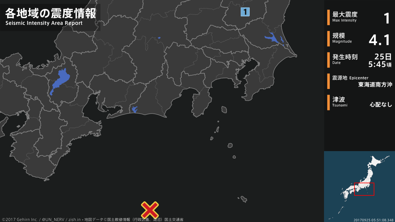 【地震情報 2017年9月25日】