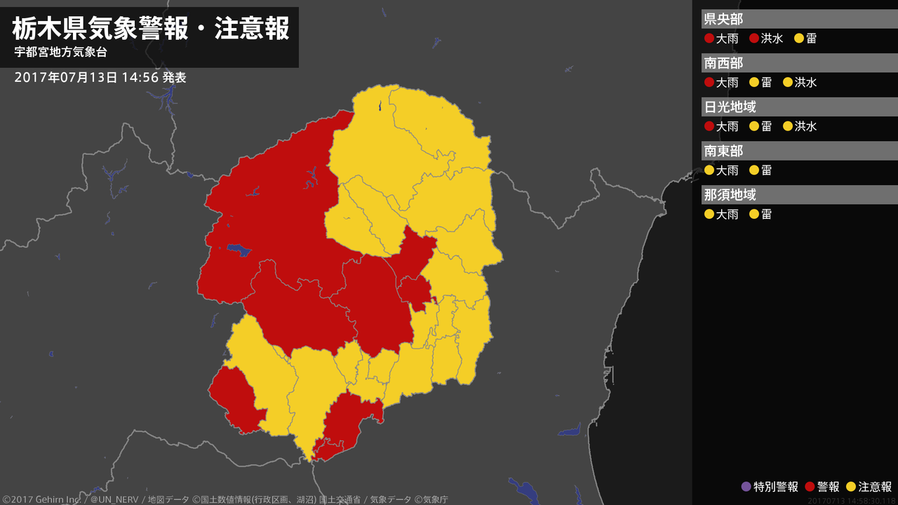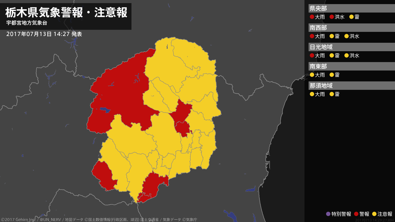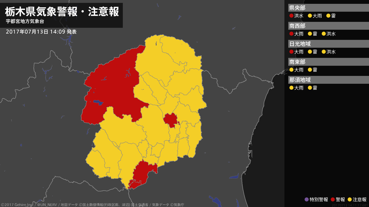 【栃木県 気象警報 2017年07月13日 14:11】