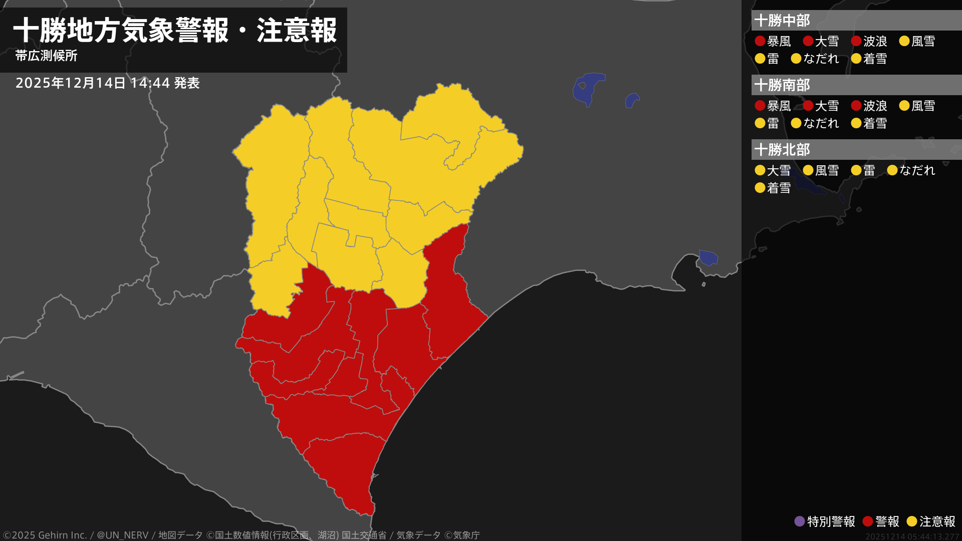 【暴風雪と高波及び大雪に関する全般気象情報 2025年12月14日 05:08】