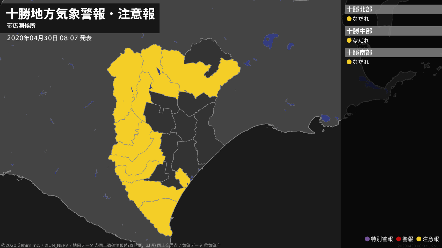 【十勝地方 気象警報・注意報 2020年04月30日 08:07】十勝地方では、ここしばらくなだれに注意してください。#気象警報注意報 #十勝地方