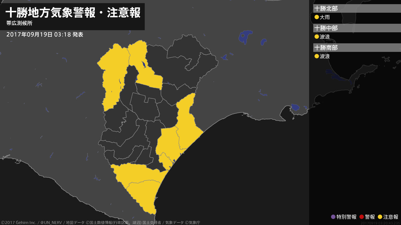 【十勝地方 気象警報・注意報 2017年09月19日 03:20】