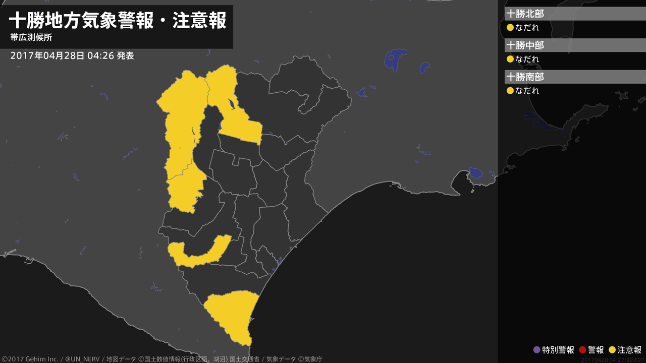 【十勝地方 気象警報・注意報 2017年04月28日 04:27】