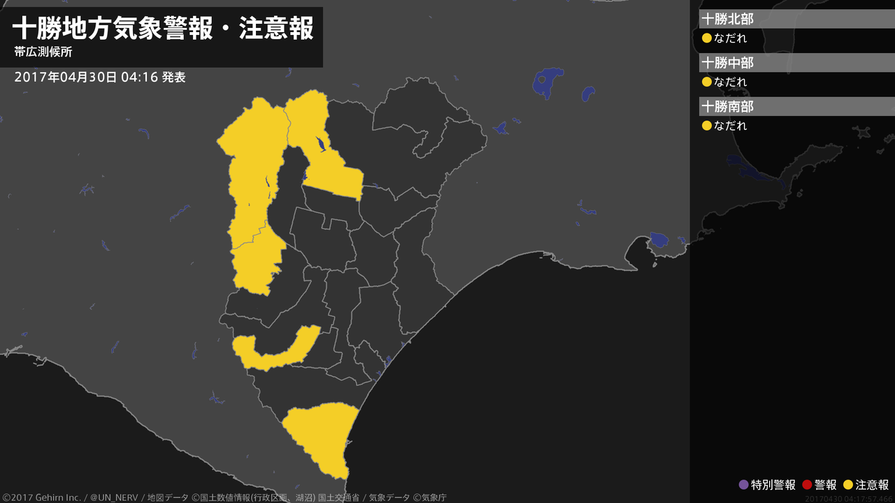 【十勝地方 気象警報・注意報 2017年04月30日 04:17】