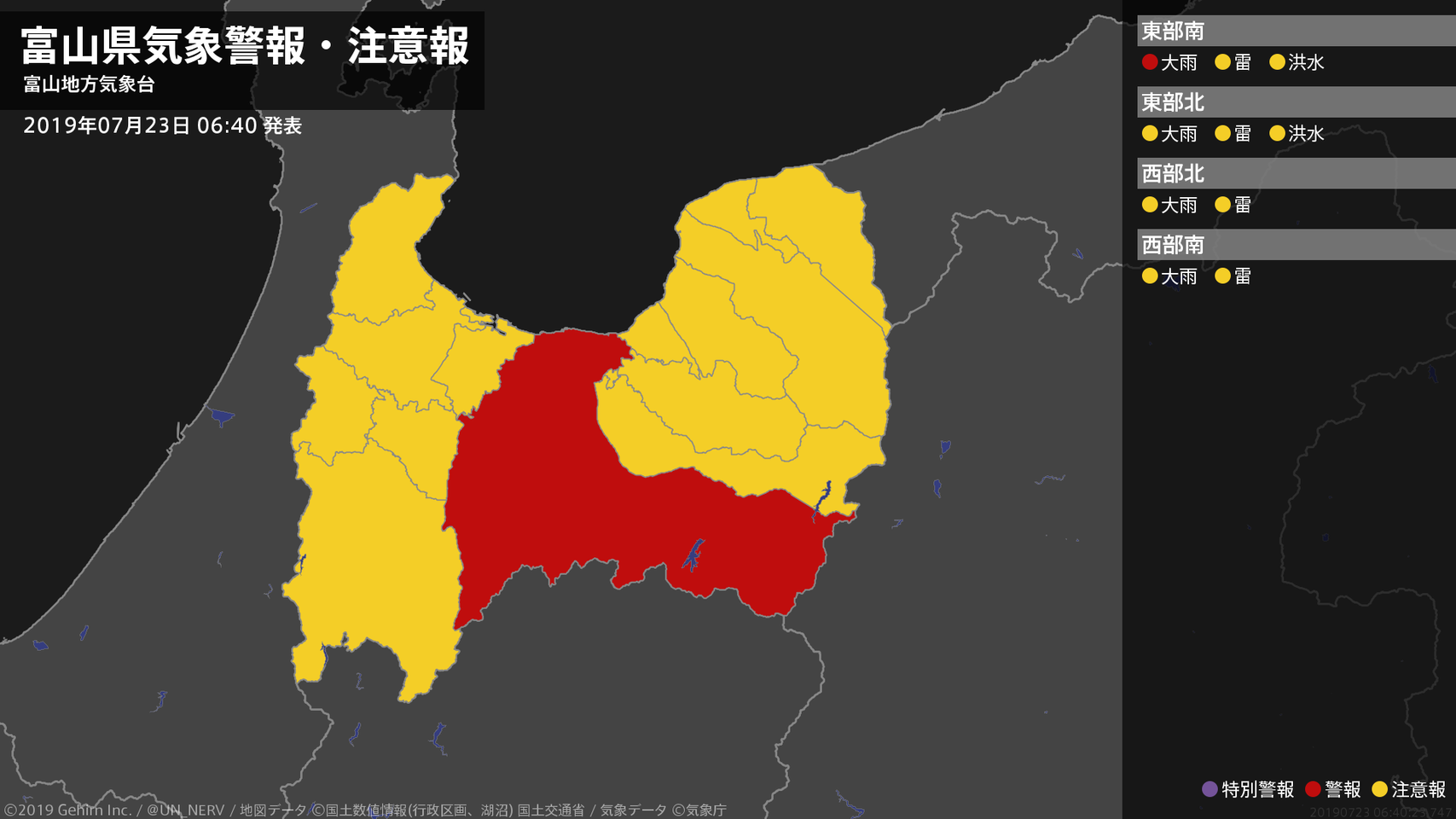 【富山県 気象警報・注意報 2019年07月23日 06:40】