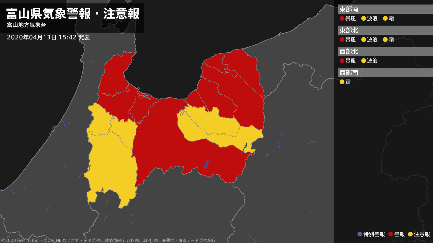 【暴風と高波及び大雨に関する全般気象情報 2020年04月13日 16:39】
