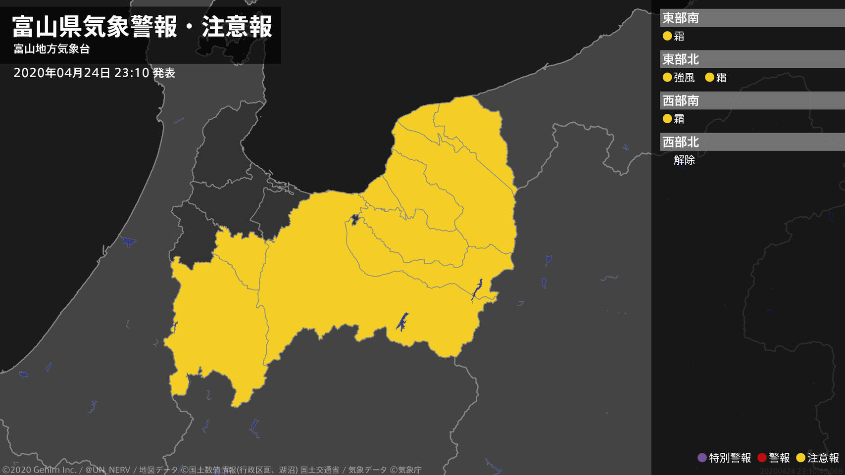 【富山県 気象警報・注意報 2020年04月24日 23:10】