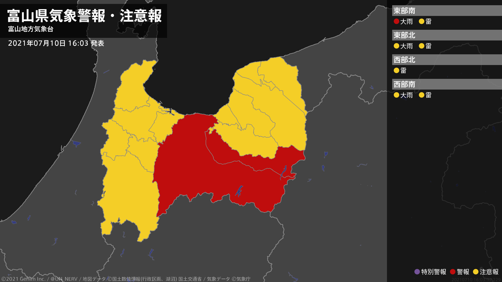 【富山県 気象警報 2021年07月10日 16:03】
