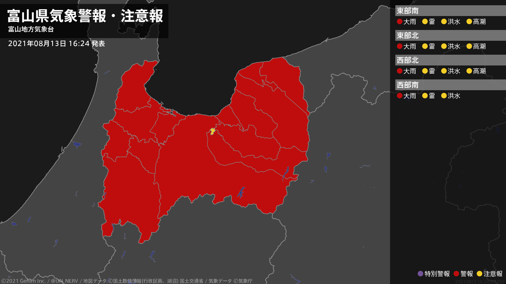 【大雨と雷及び突風に関する全般気象情報 2021年08月13日 16:57】