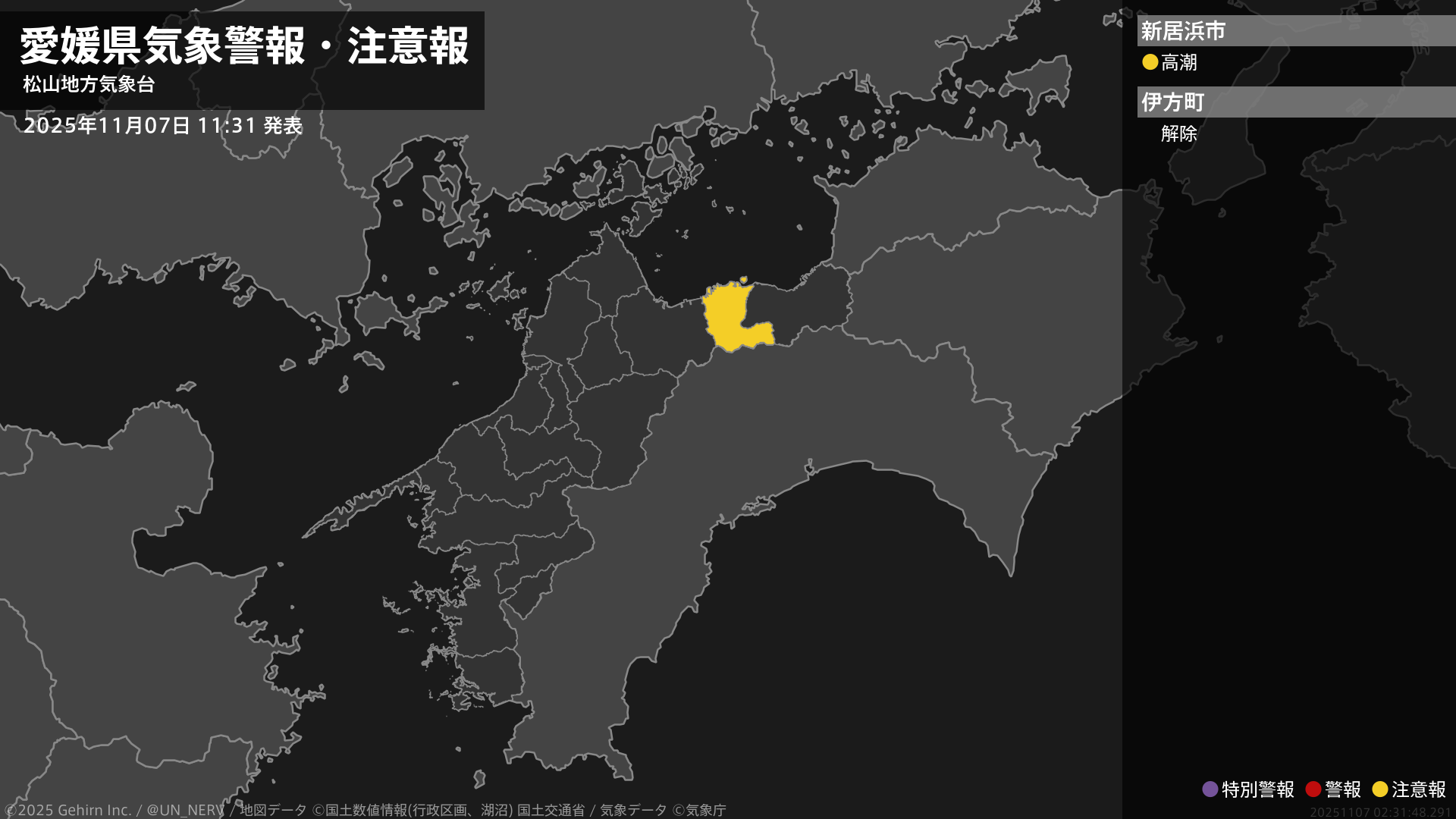 【高知県 気象警報・注意報 2025年11月04日 17:33】注意報を解除します。#気象警報注意報 #高知県