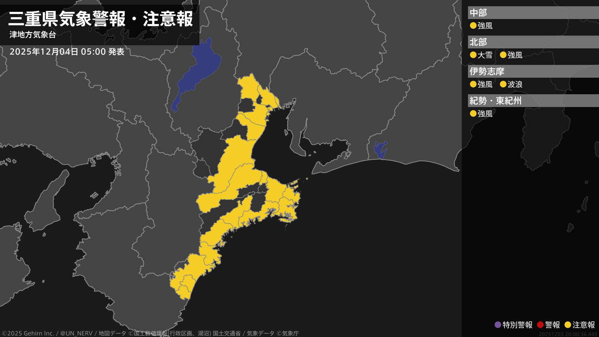 【長野県 気象警報・注意報 2025年12月04日 11:26】