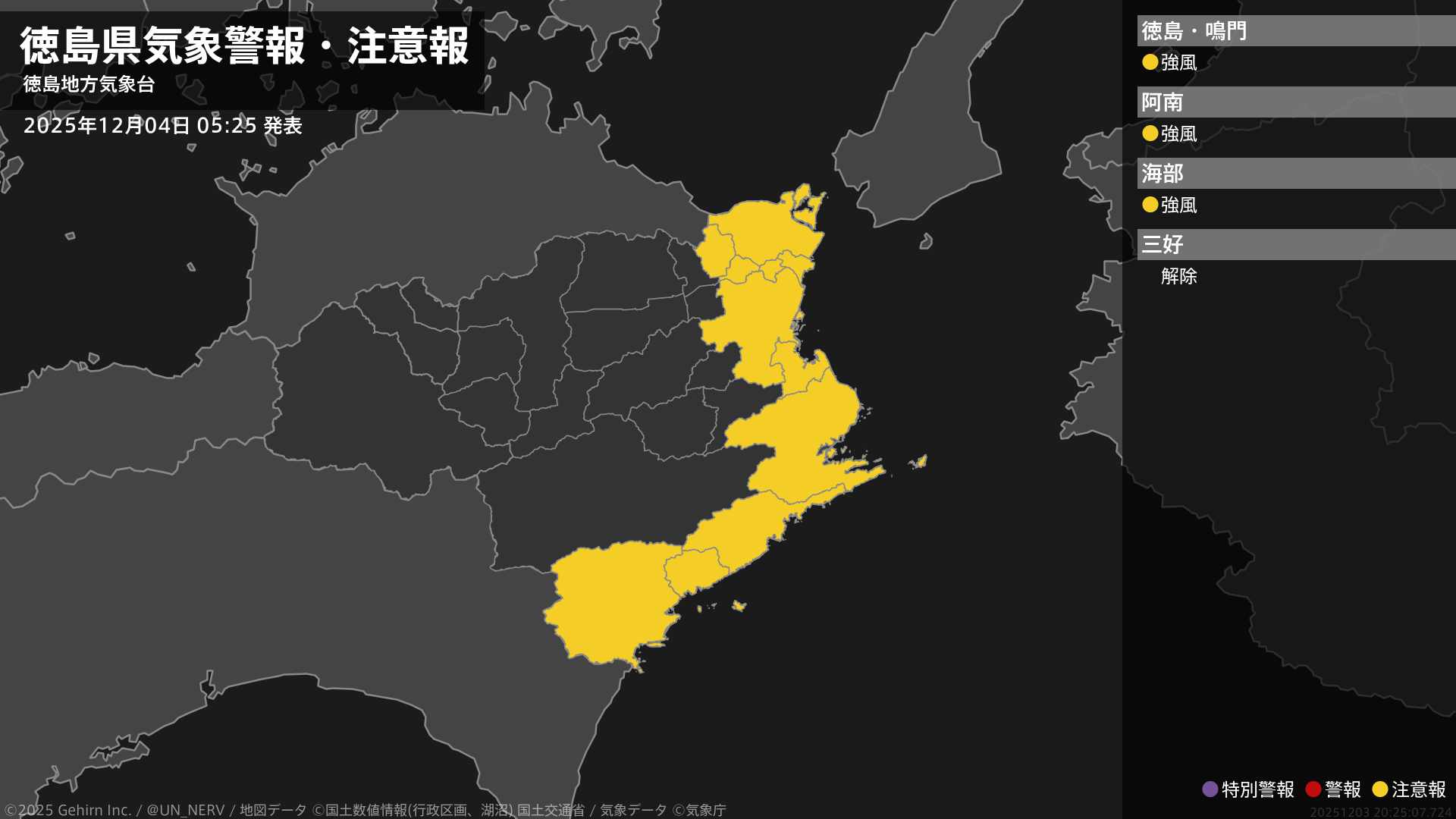 【徳島県 気象警報・注意報 2025年12月04日 10:25】