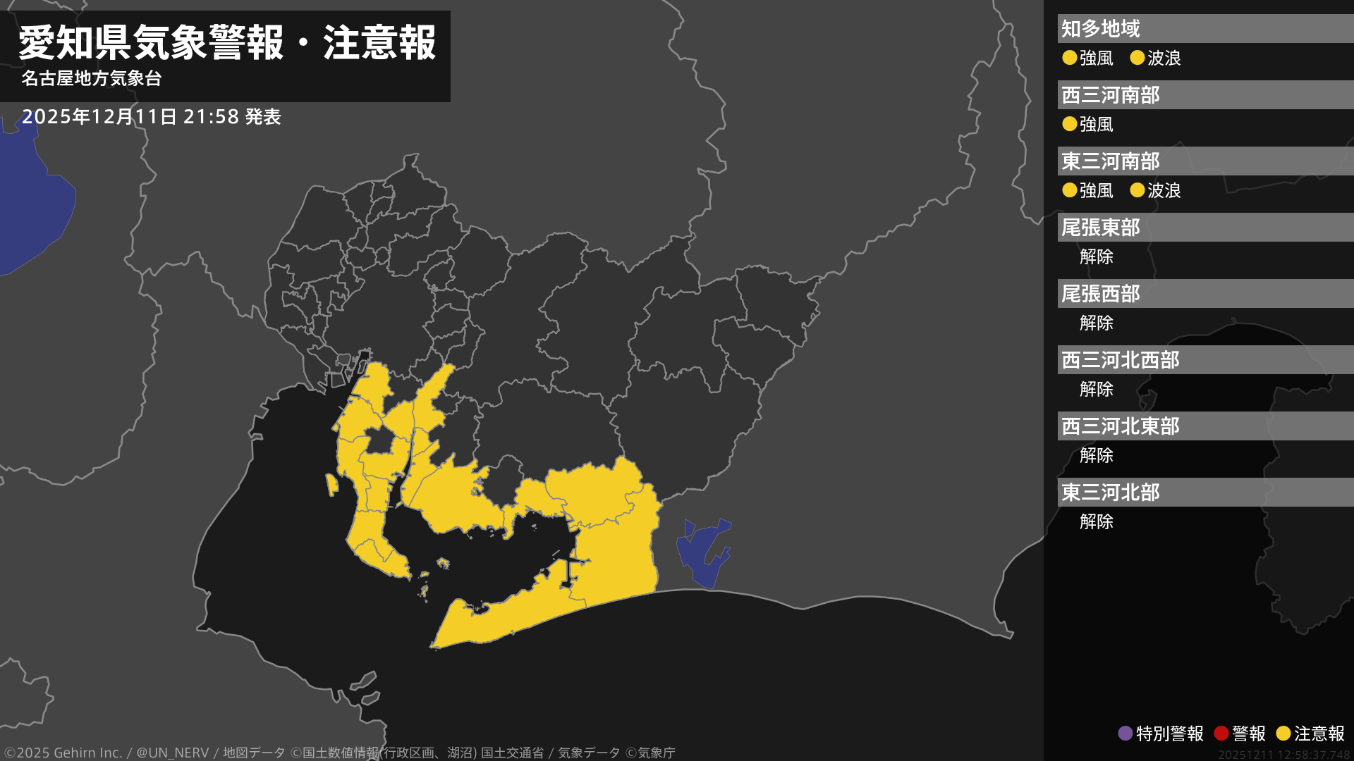 【岐阜県 気象警報・注意報 2025年12月14日 06:15】岐阜県では、14日昼過ぎから急な強い雨や落雷に注意してください。#気象警報注意報 #岐阜県
