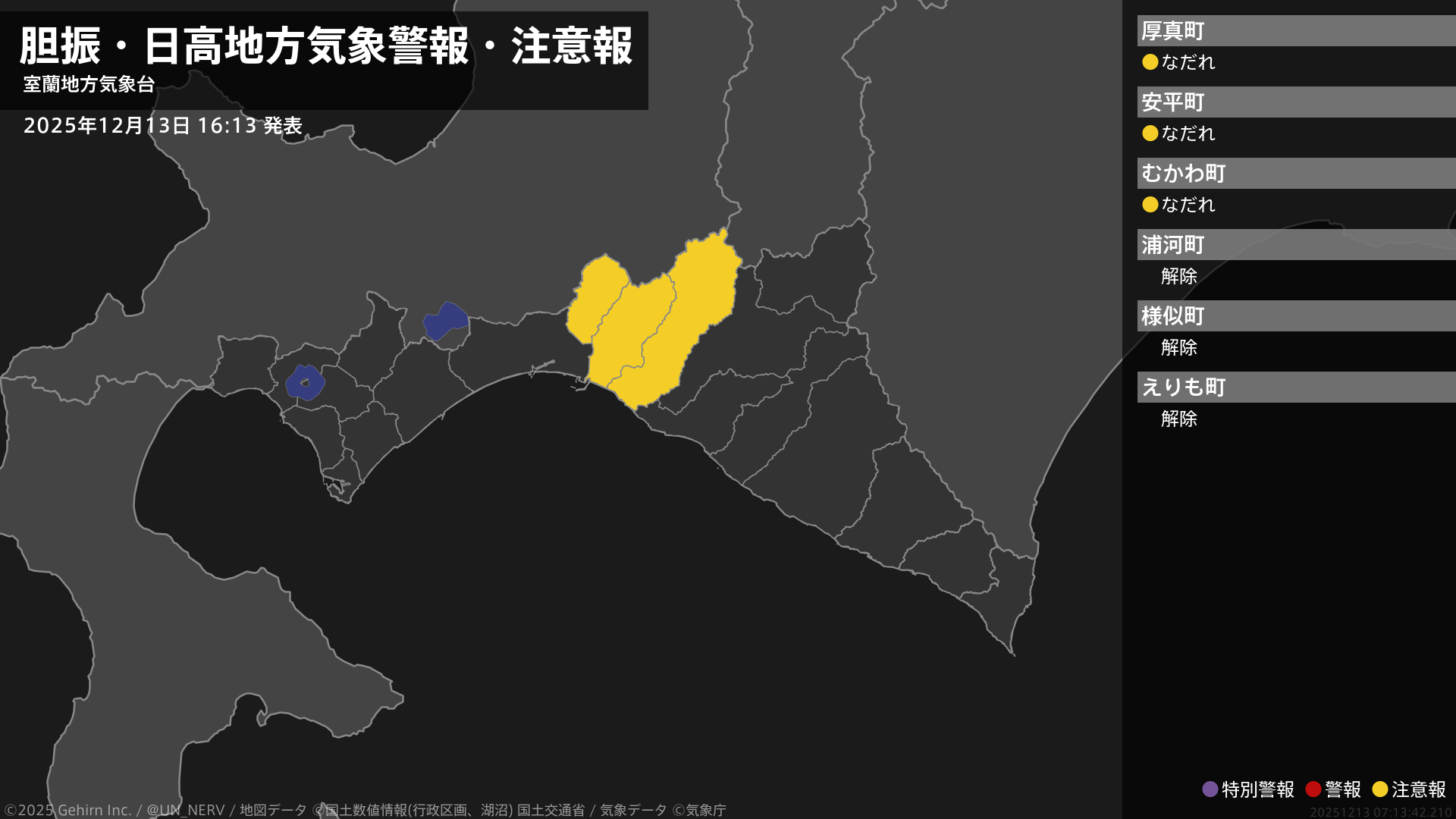 【十勝地方 気象警報・注意報 2025年12月14日 06:12】十勝地方では、14日昼過ぎから風雪や大雪、高波、電線等への着雪に、15日までなだれに注意してください。#気象警報注意報 #十勝地方