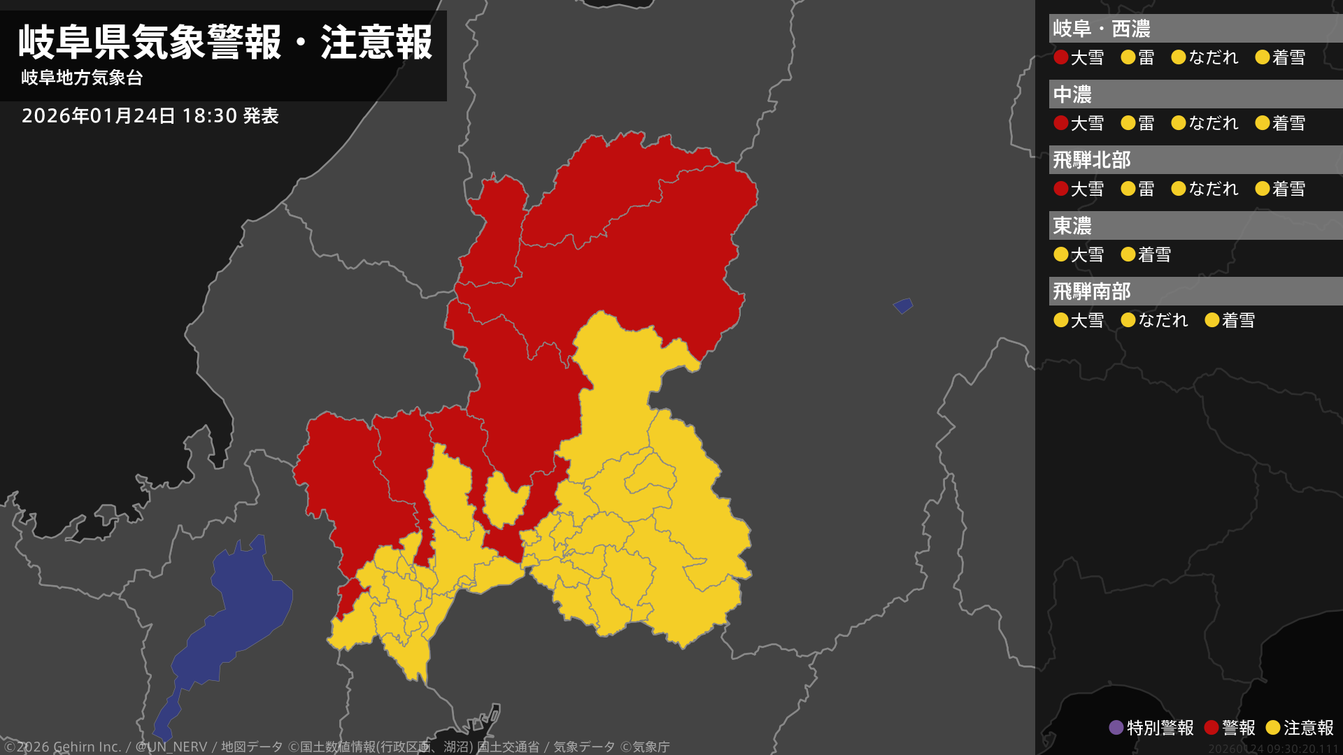 【岐阜県 気象警報・注意報 2026年01月24日 18:30】