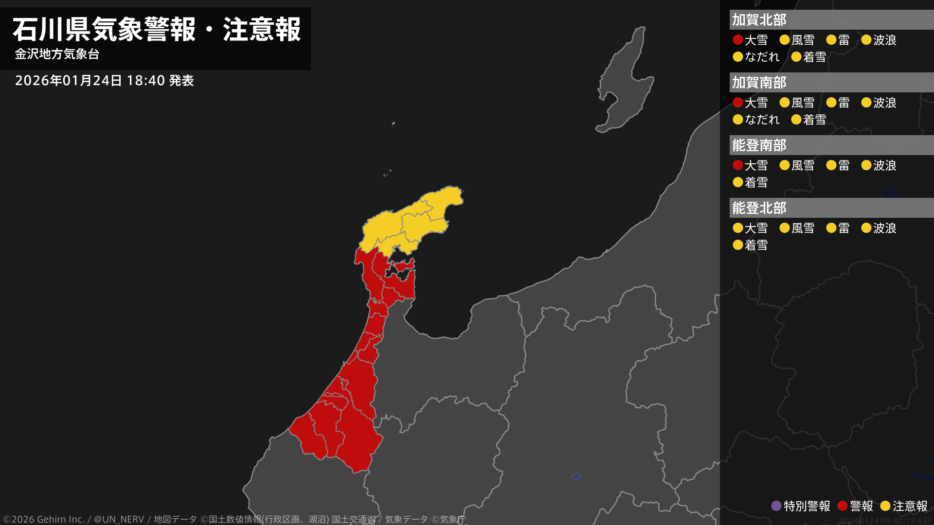【石川県 気象警報・注意報 2026年01月24日 18:40】