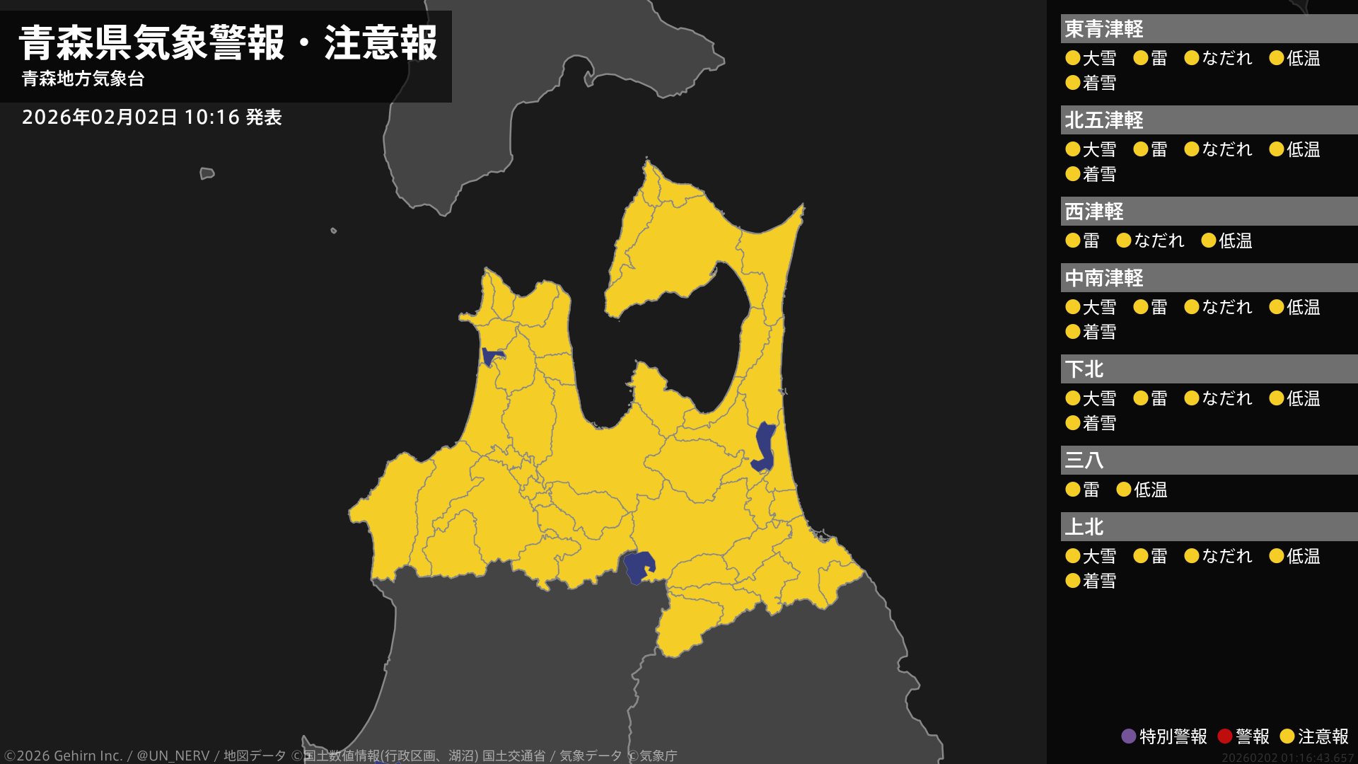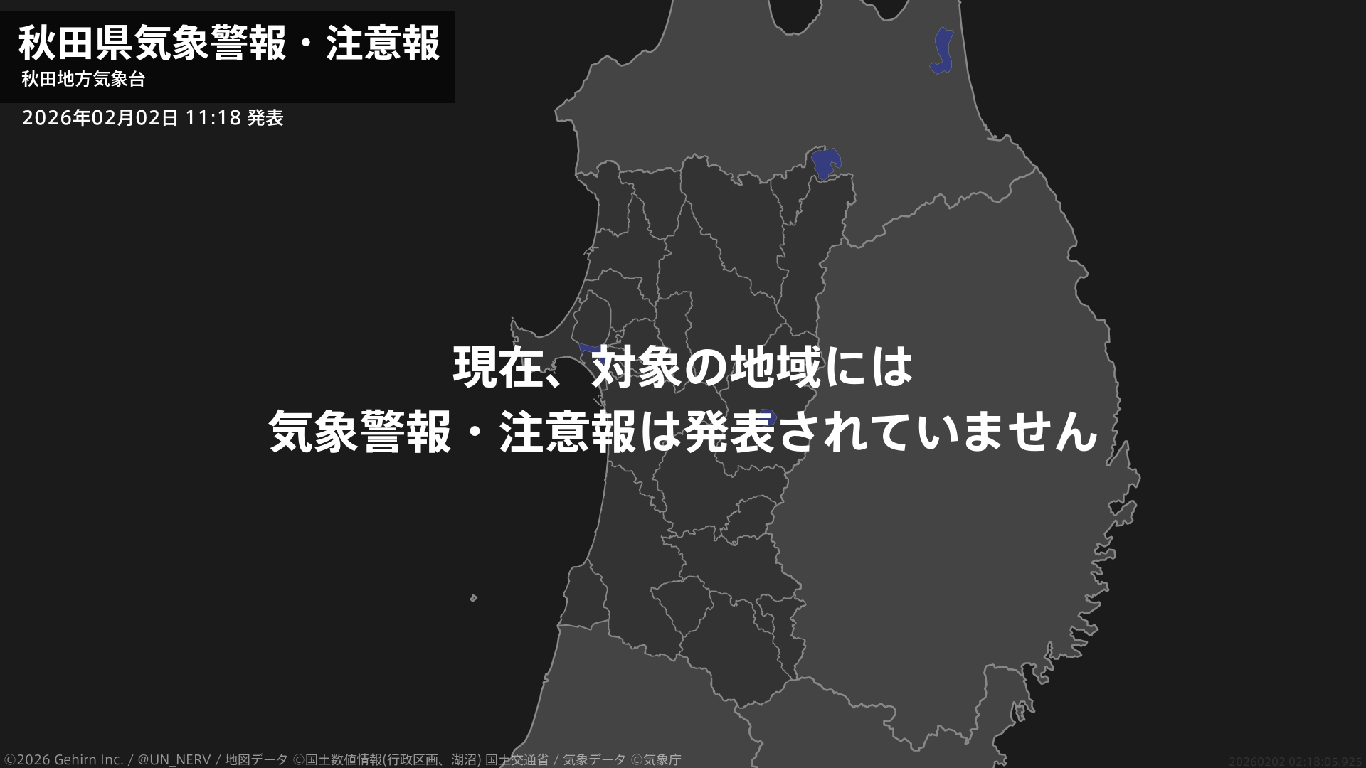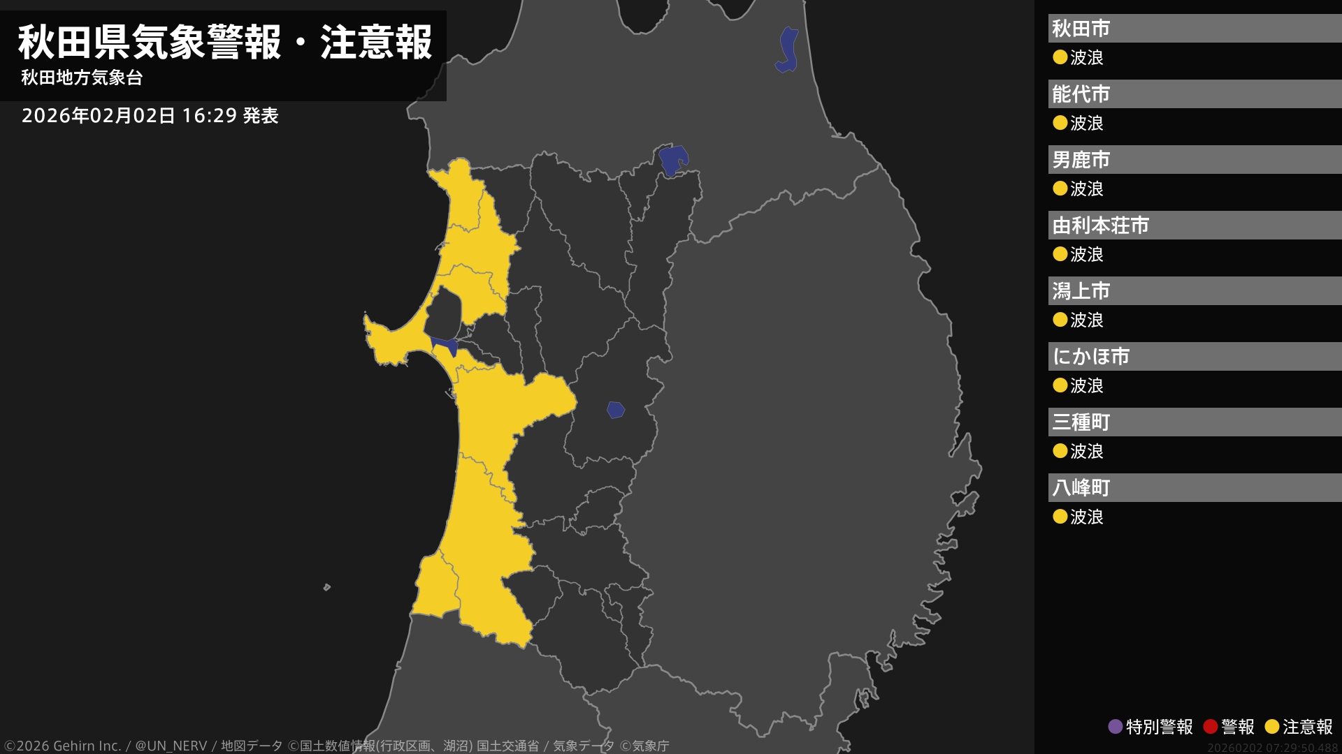 【秋田県 気象警報・注意報 2026年02月02日 16:29】