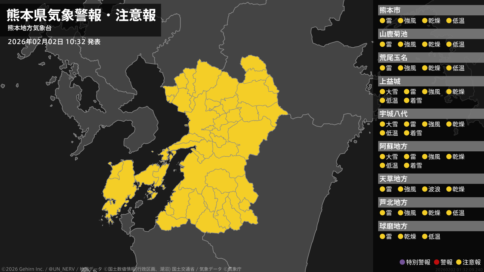 【大分県 気象警報・注意報 2026年02月02日 16:13】