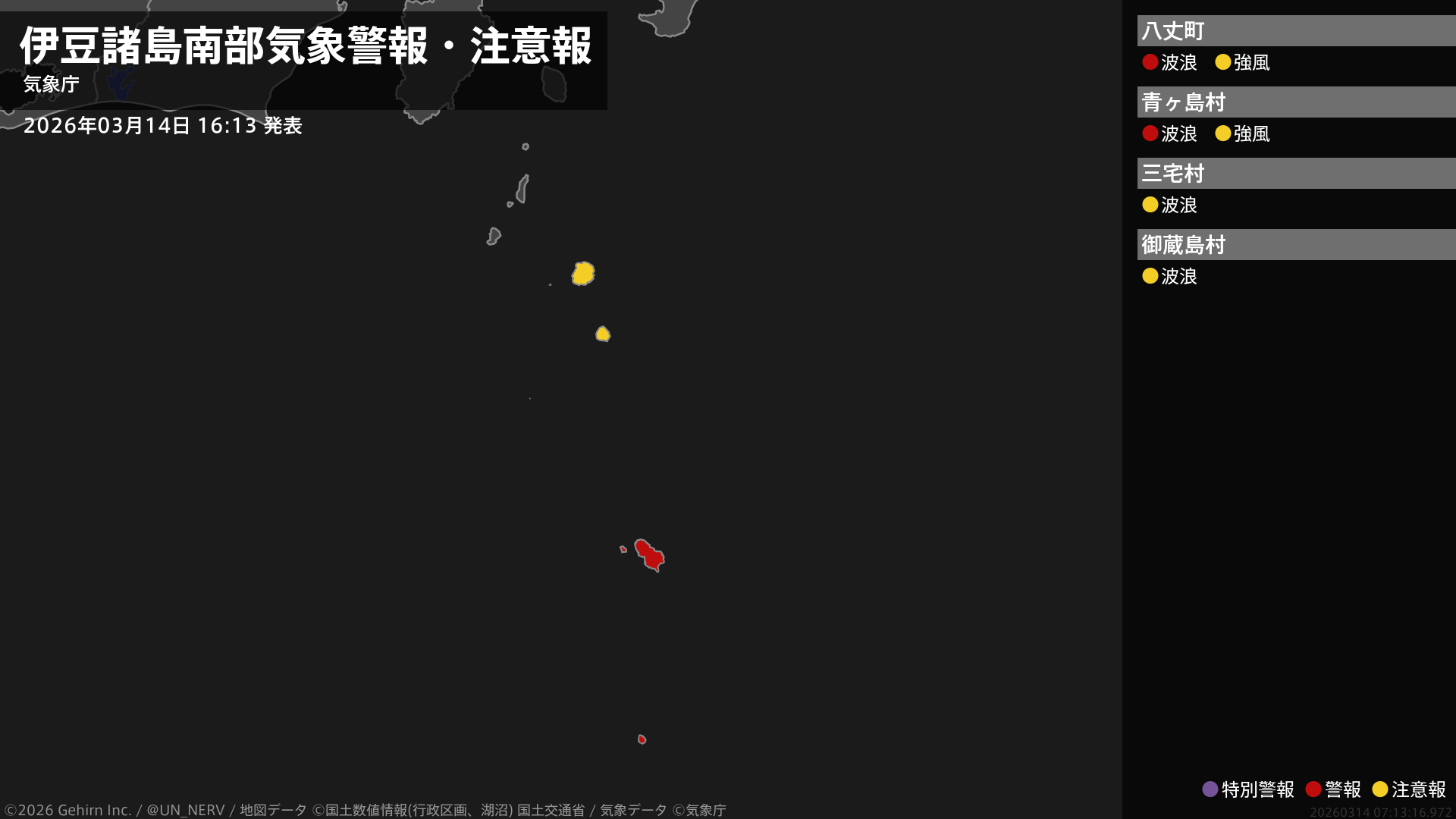 【東京都(伊豆諸島・小笠原諸島) 気象情報 2026年03月14日 16:29】