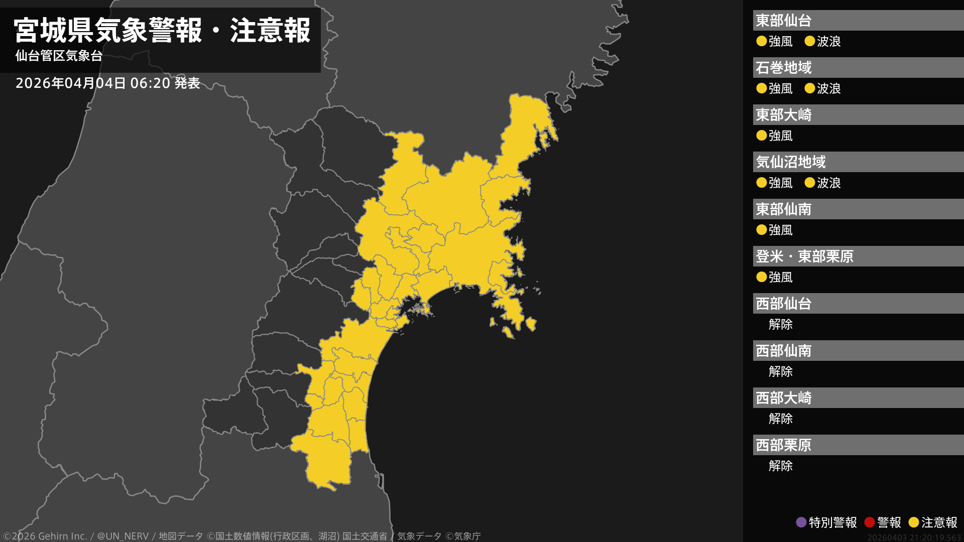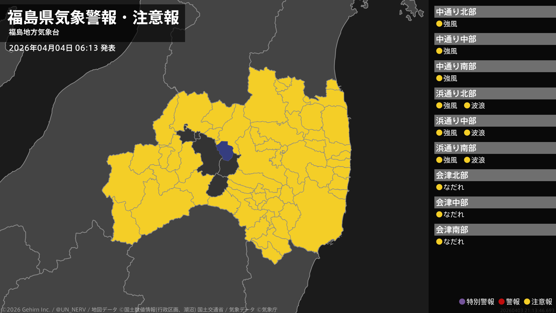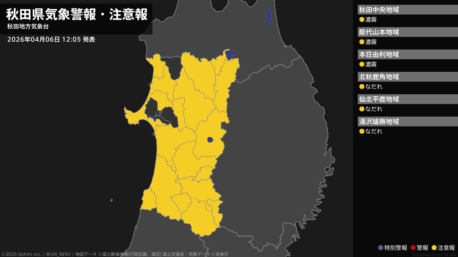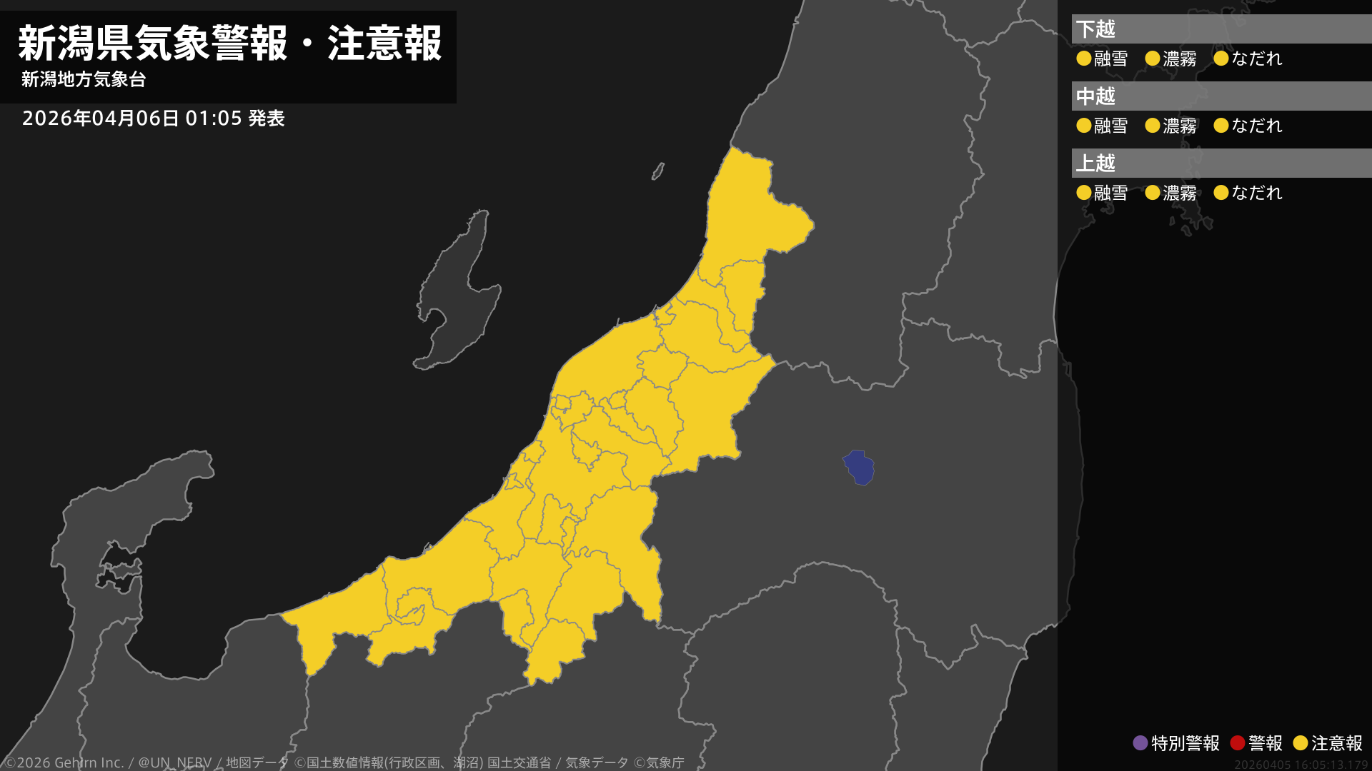 【新潟県 気象警報・注意報 2026年04月06日 01:05】