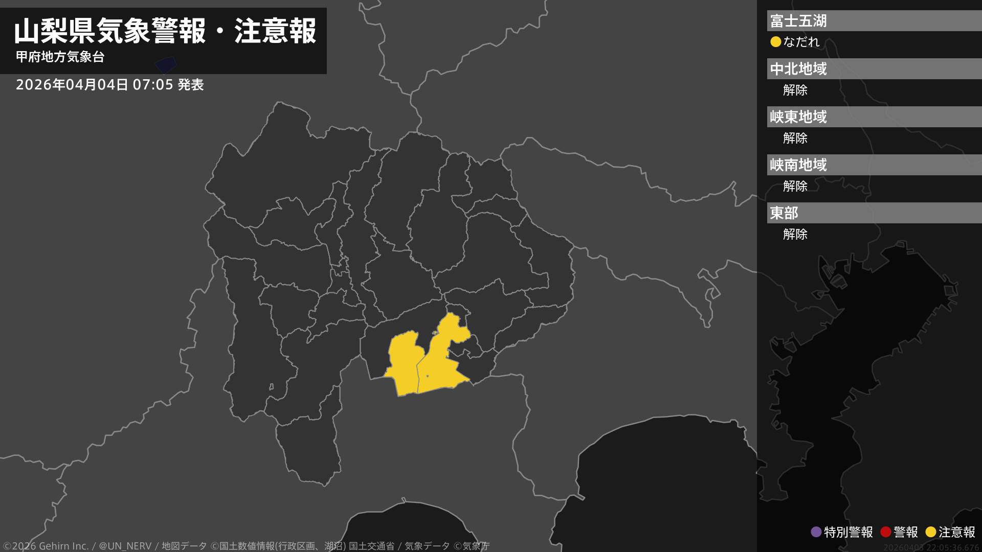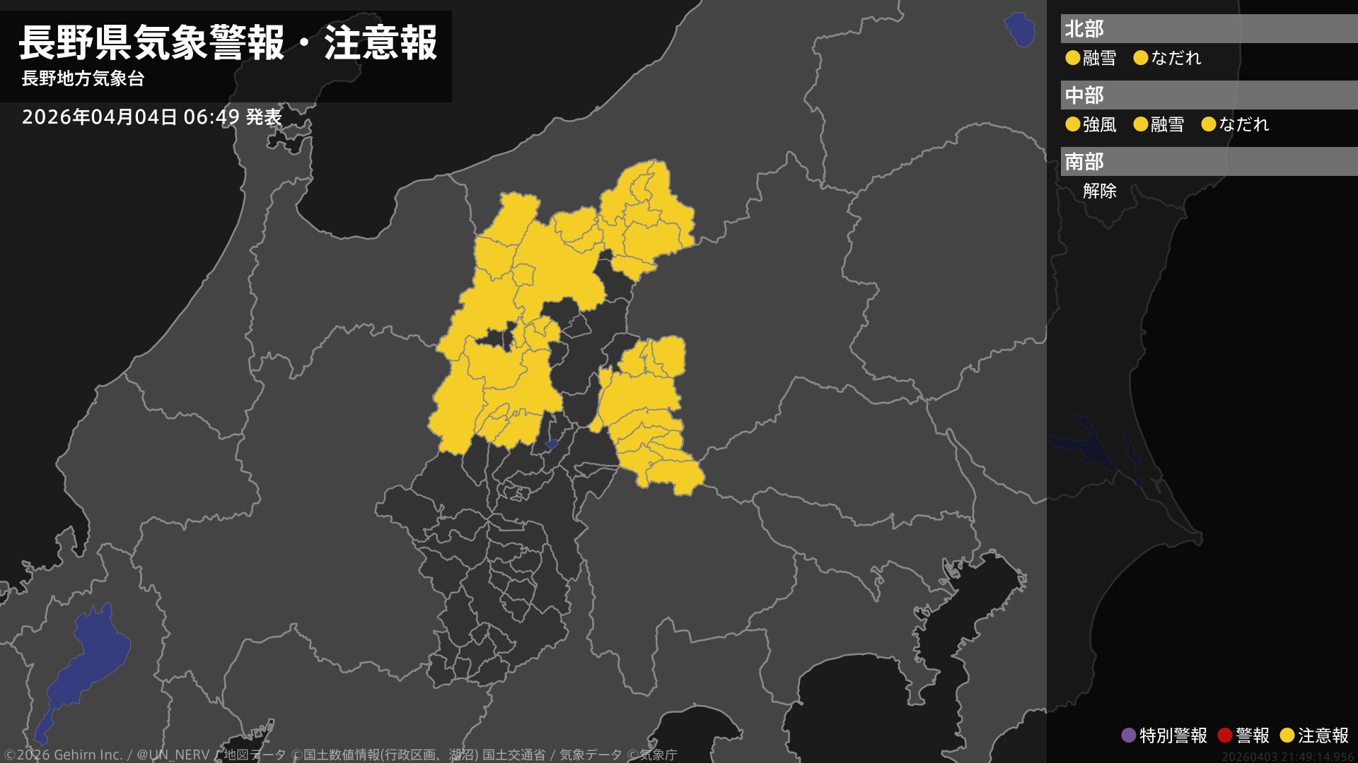【長野県 気象警報・注意報 2026年04月05日 22:58】