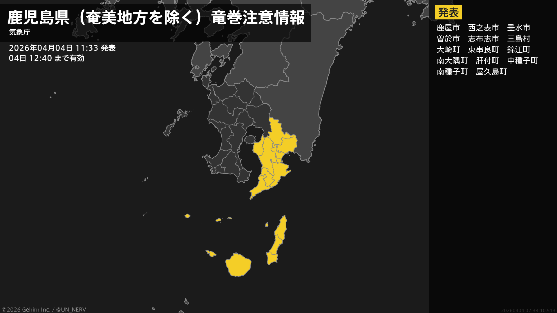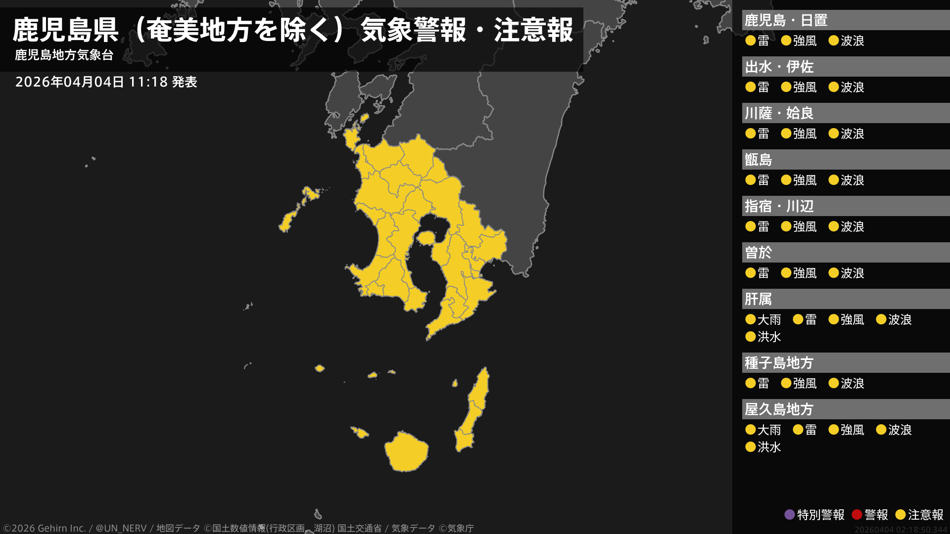 注意報を解除します。
