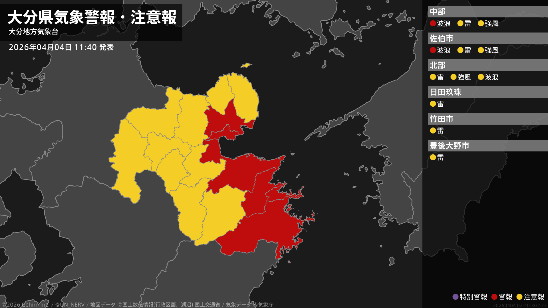 【埼玉県 気象警報・注意報 2026年04月05日 23:40】