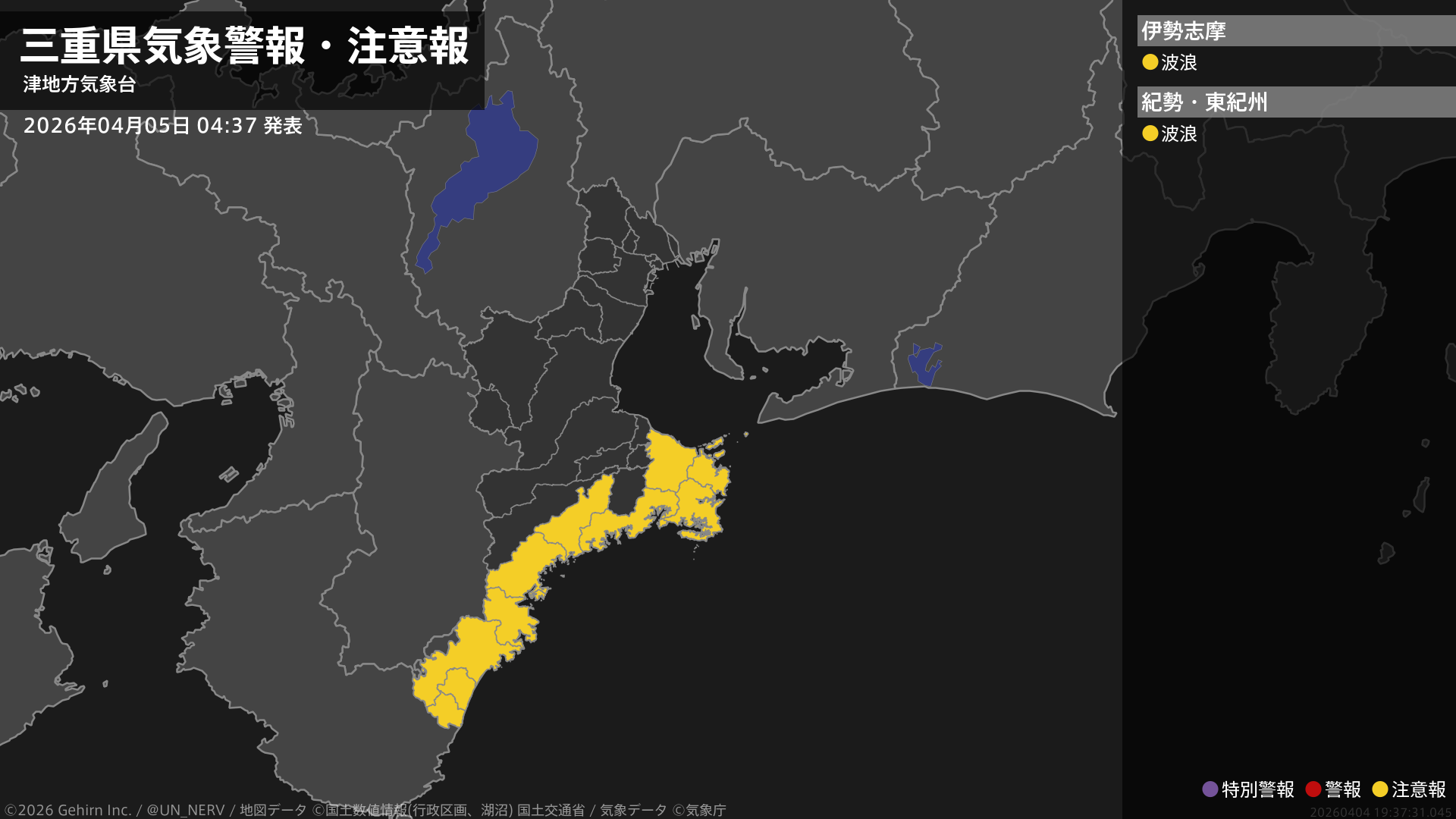 【和歌山県 気象警報・注意報 2026年04月05日 21:30】