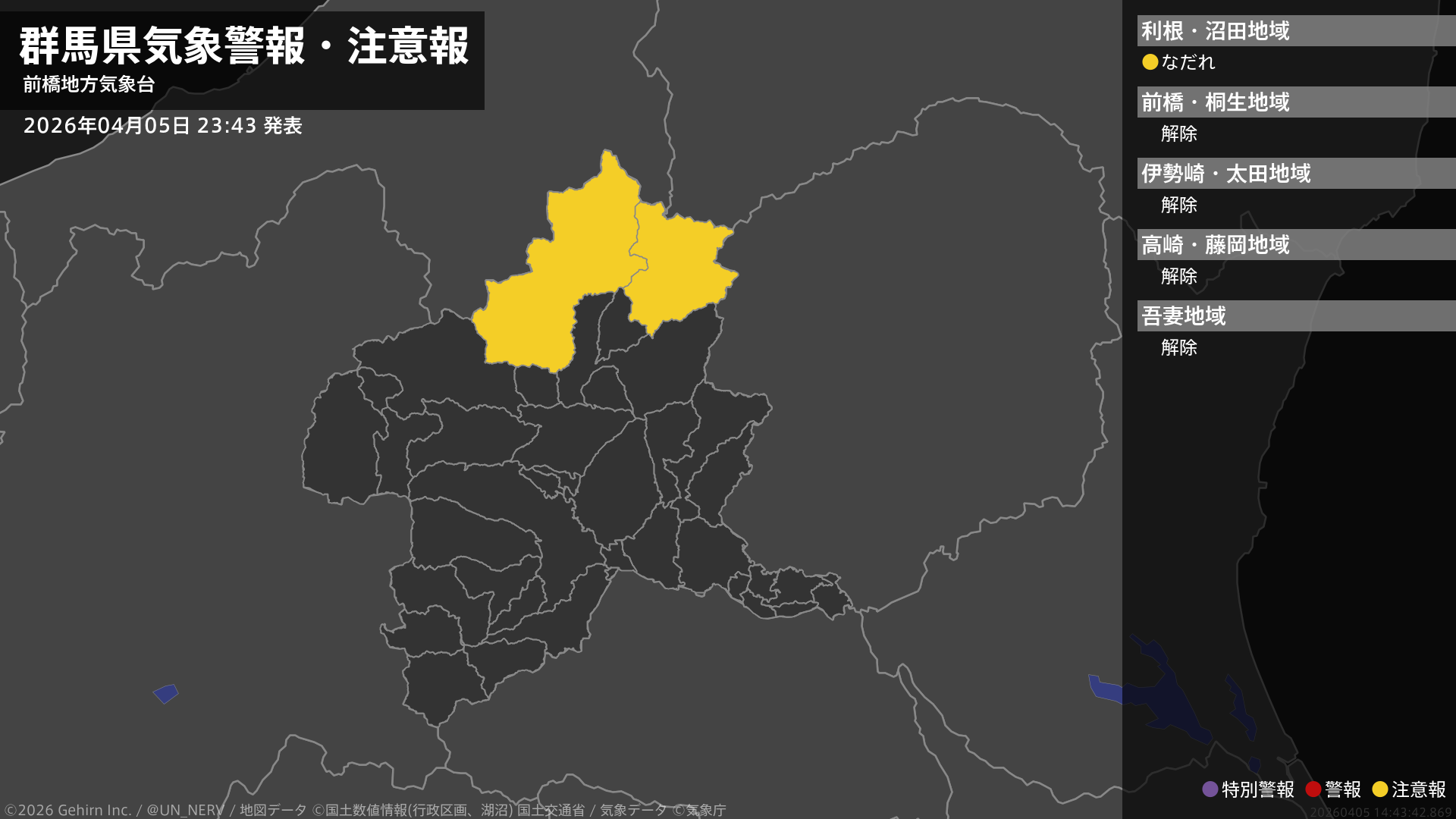 【群馬県 気象警報・注意報 2026年04月05日 23:43】