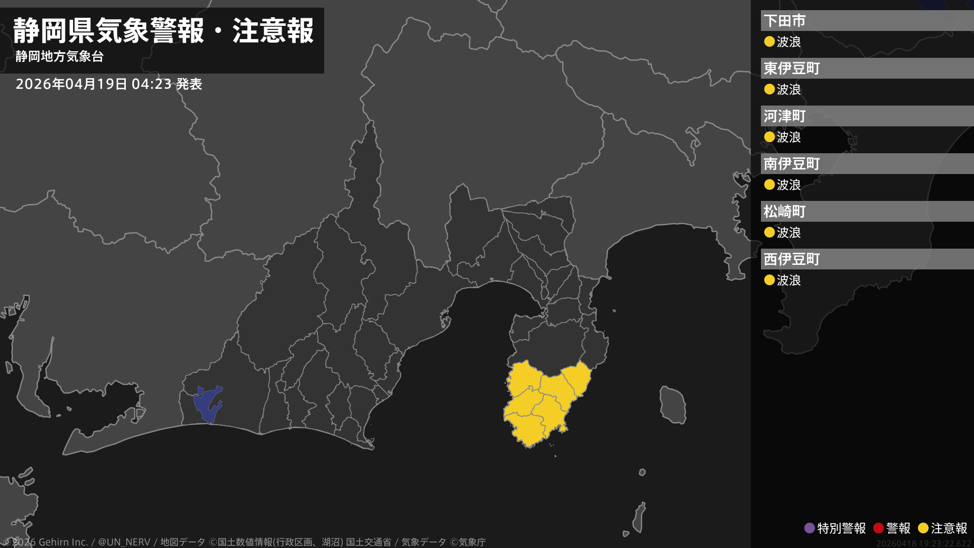 【高知県 気象警報・注意報 2026年04月18日 04:14】高知県では、高波に注意してください。#気象警報注意報 #高知県