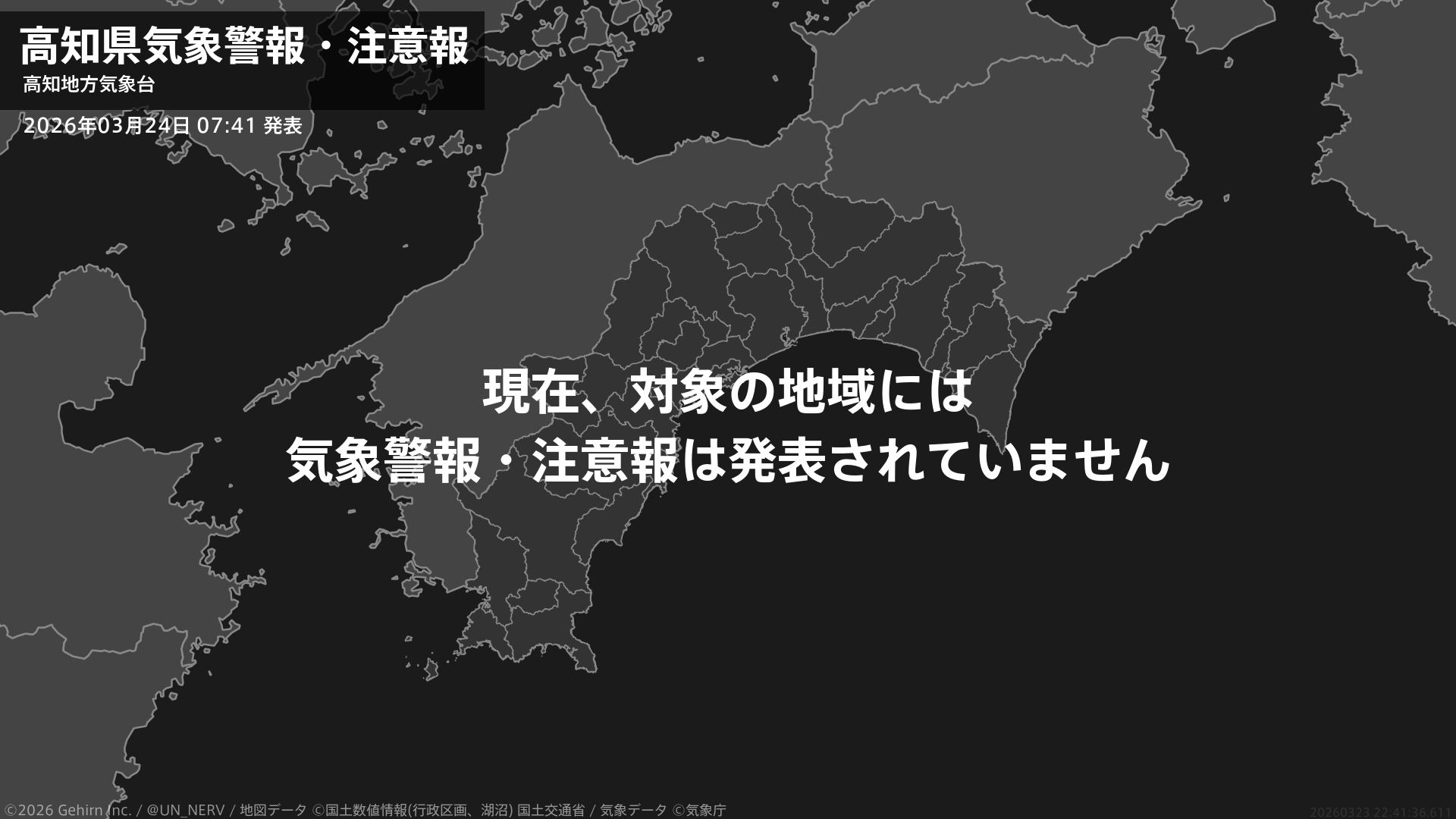 【高知県 気象警報・注意報 2026年03月24日 07:41】注意報を解除します。#気象警報注意報 #高知県