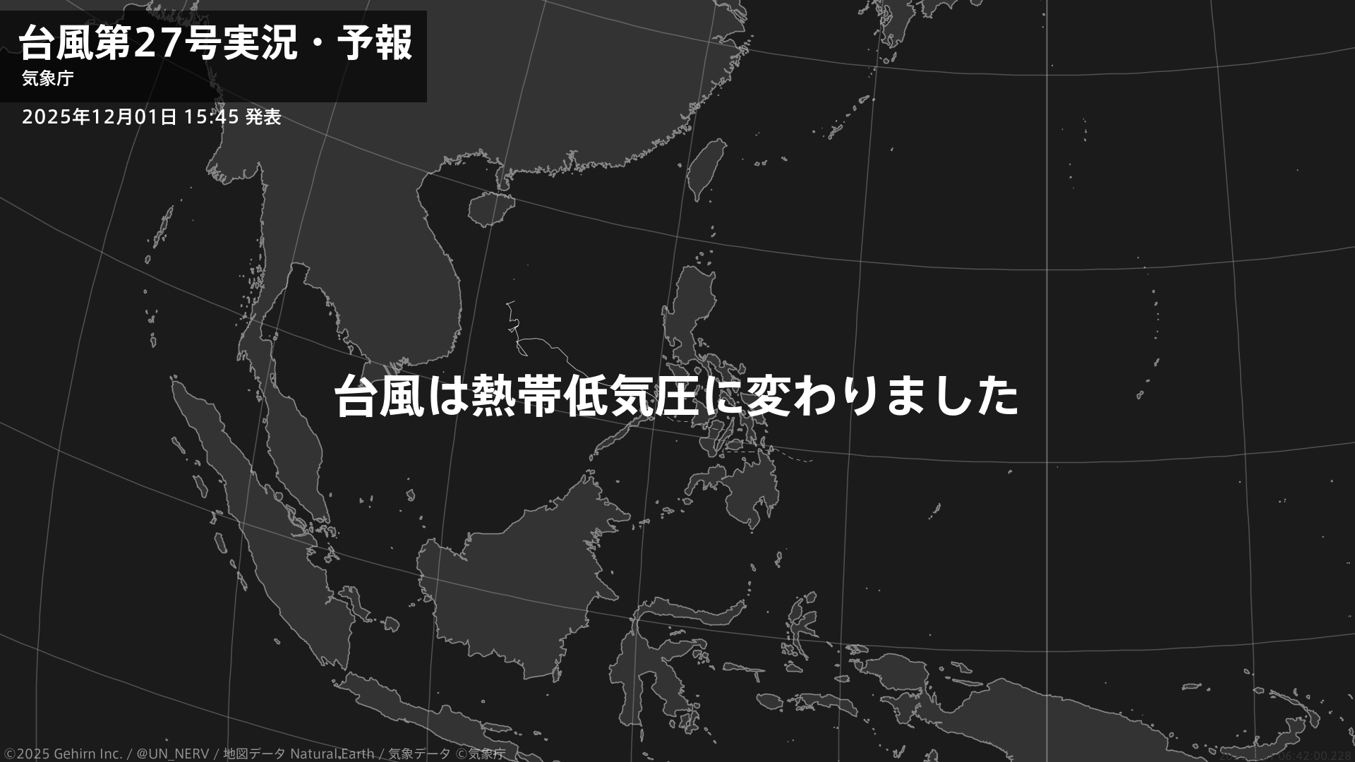 【台風第27号実況・予報 2025年12月01日 15:42】
