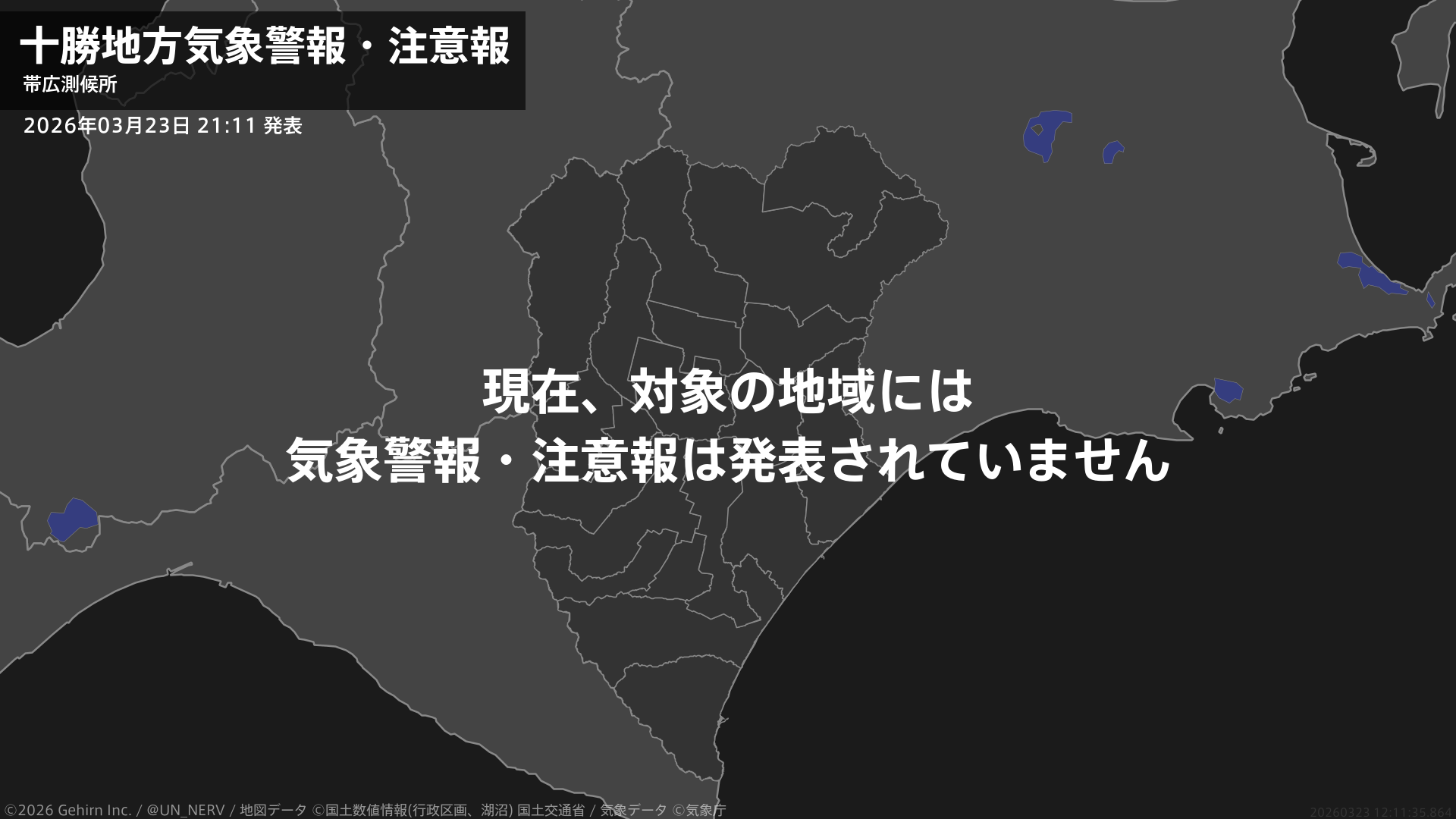 【十勝地方 気象警報・注意報 2026年03月23日 21:11】注意報を解除します。#気象警報注意報 #十勝地方