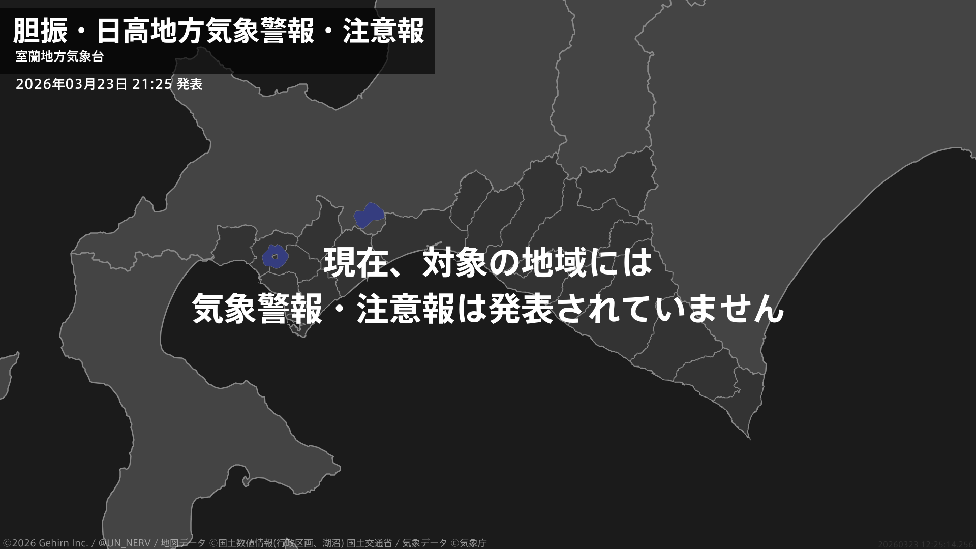 【胆振・日高地方 気象警報・注意報 2026年03月23日 21:25】注意報を解除します。#気象警報注意報 #胆振地方 #日高地方