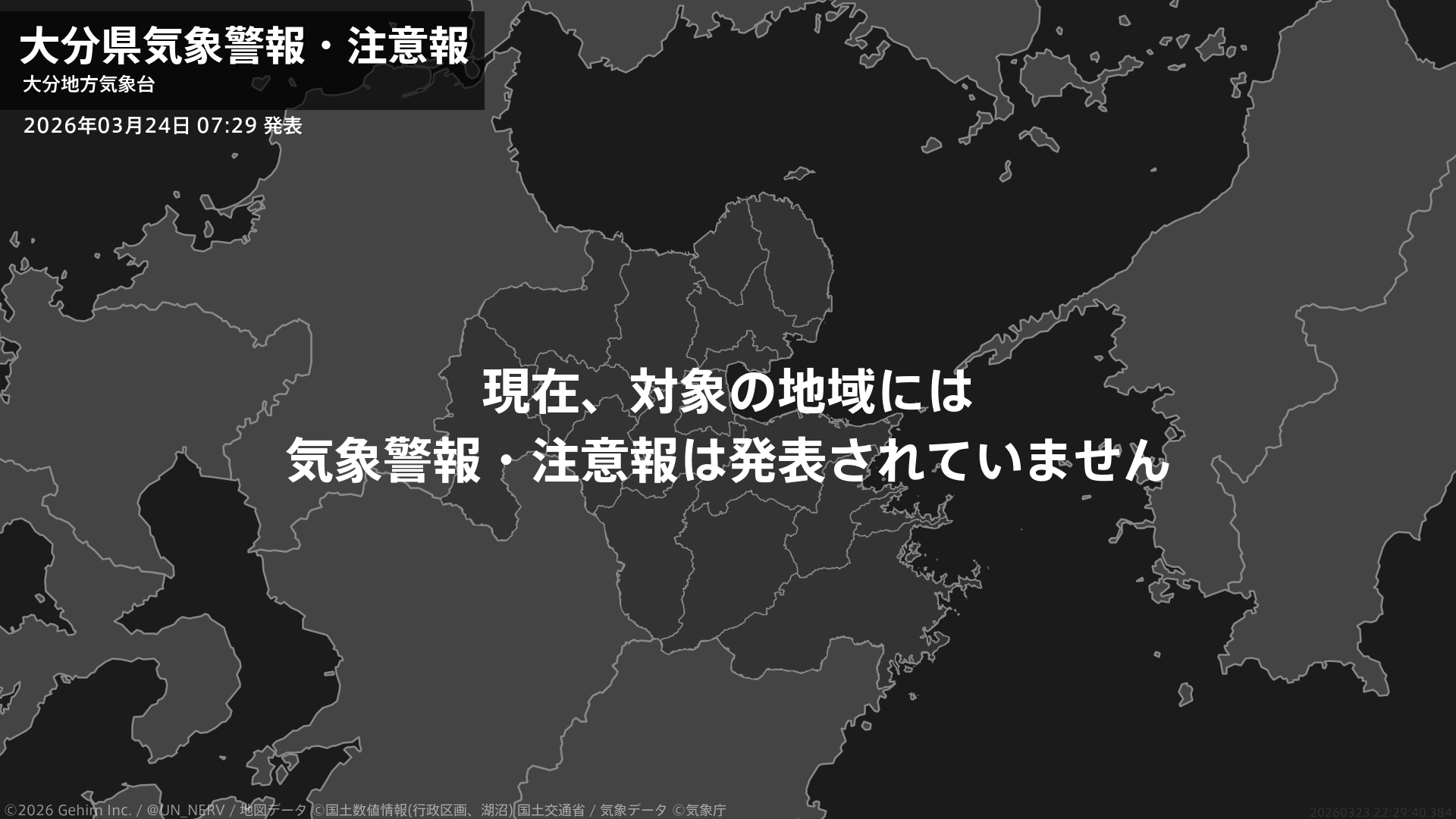 【大分県 気象警報・注意報 2026年03月24日 07:29】注意報を解除します。#気象警報注意報 #大分県