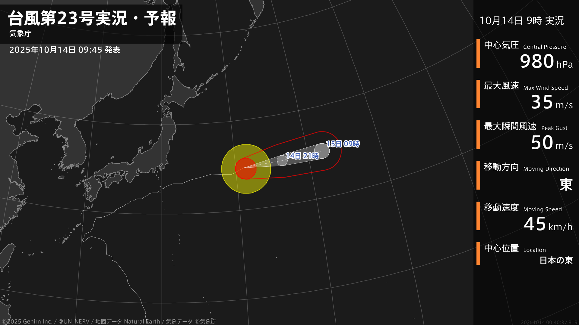 【台風第23号実況・予報 2025年10月14日 09:40】