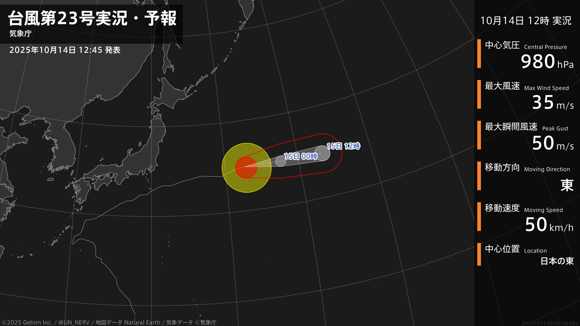 【台風第23号実況・予報 2025年10月14日 12:40】