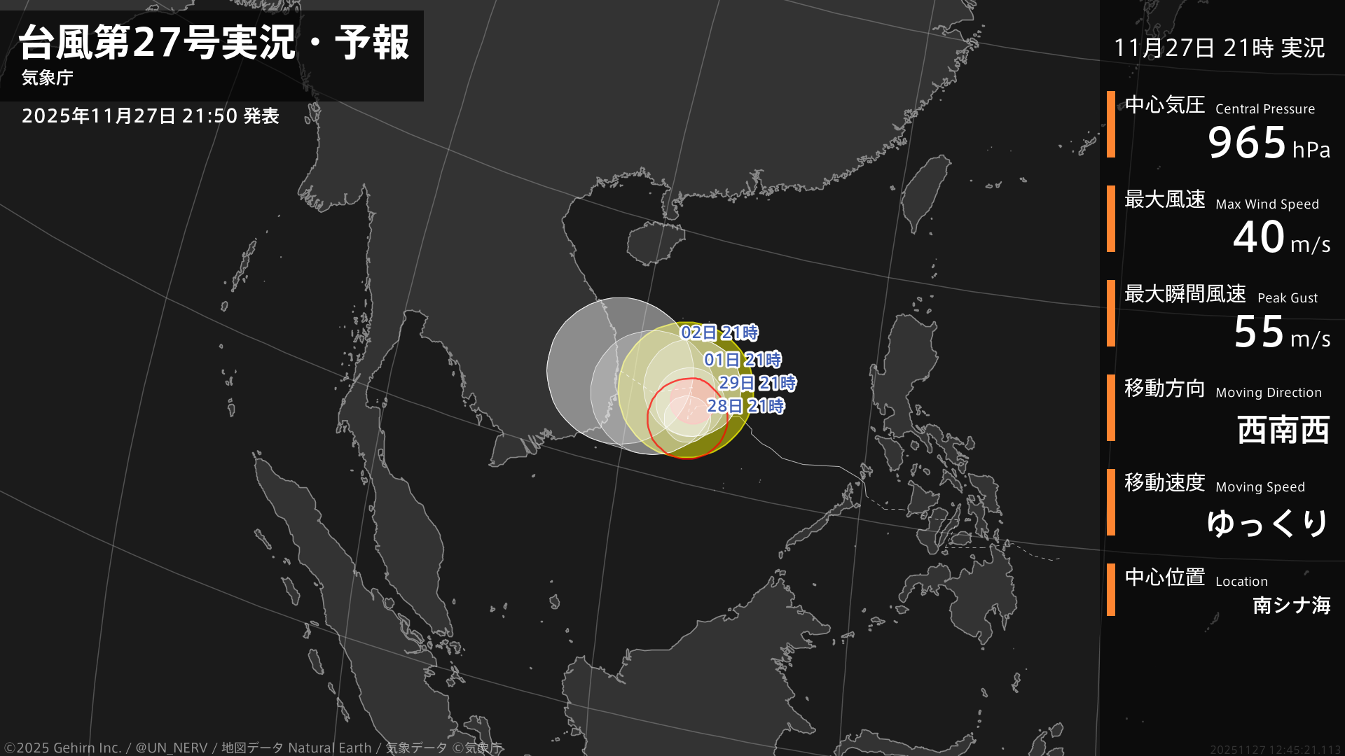【台風第27号実況・予報 2025年11月27日 21:45】