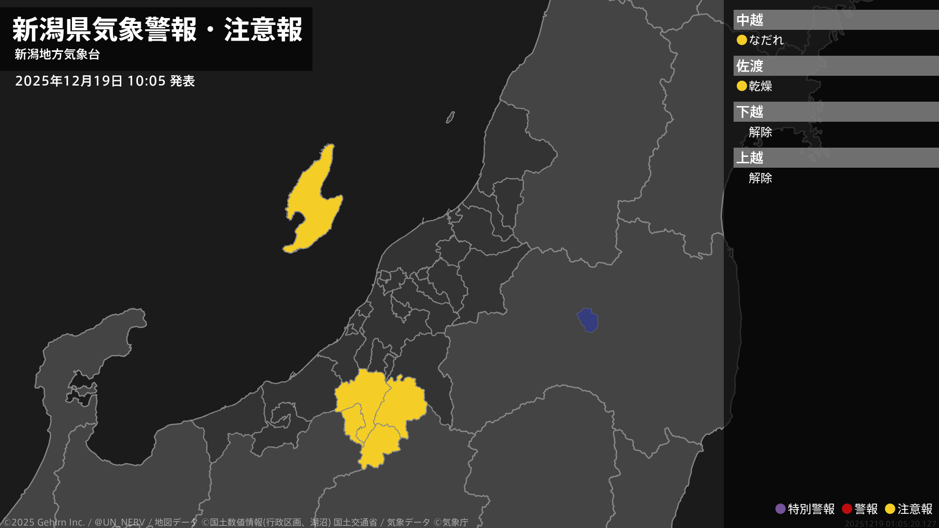 【新潟県 気象警報・注意報 2025年12月19日 10:05】