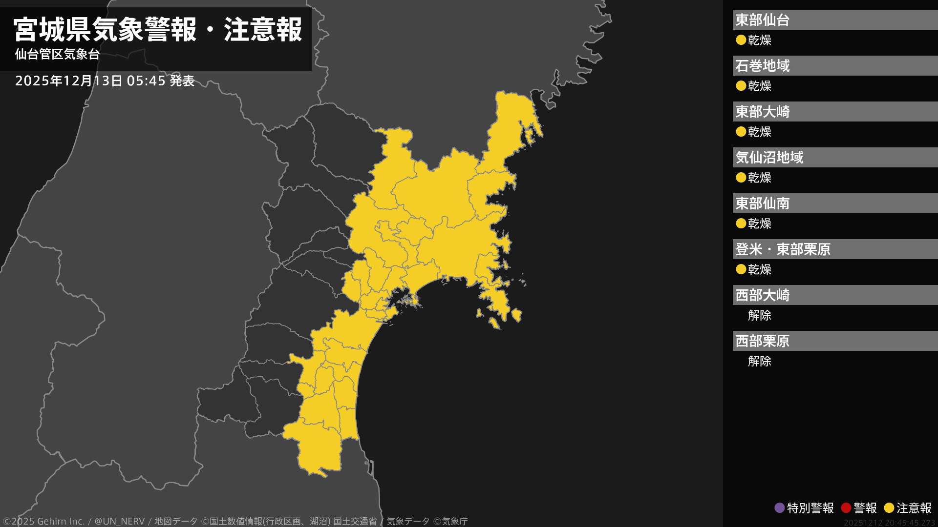 【埼玉県 気象警報・注意報 2025年12月14日 11:27】注意報を解除します。#気象警報注意報 #埼玉県